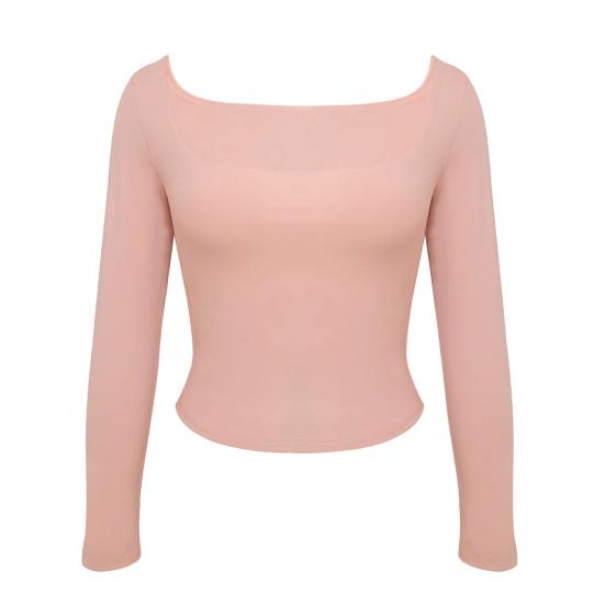 Представляем наш женский топ с длинными рукавами с V-образным вырезом, идеальное дополнение к вашему гардеробу. Эта футболка, изготовленная из 100% полиэстера, невероятно мягкая, эластичная и приятная для кожи. Его непрозрачная ткань обеспечивает максимальный комфорт в течение всего дня.