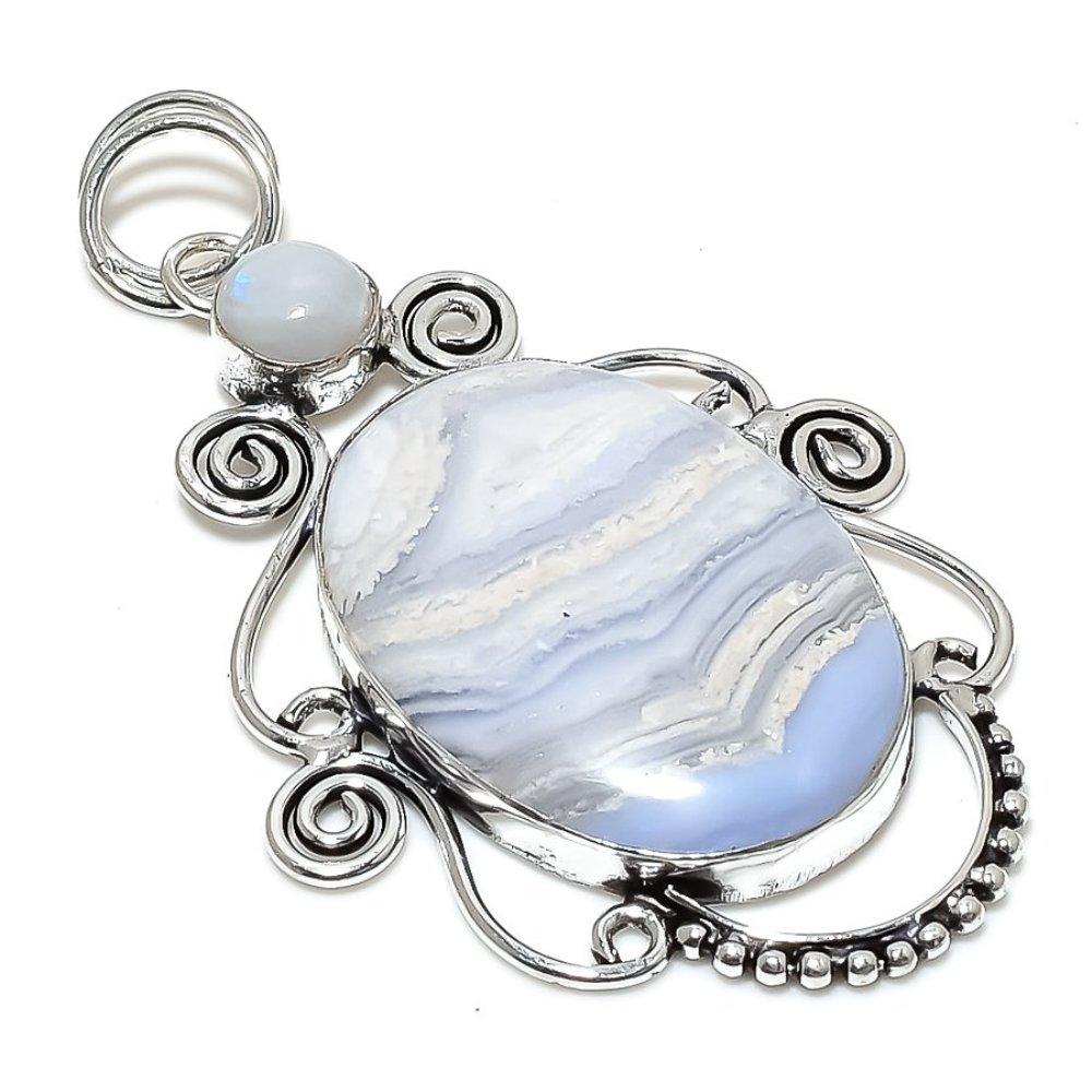 Подвеска из стерлингового серебра 925 пробы с натуральным синим кружевным агатом и лунным камнем 3,15 дюйма