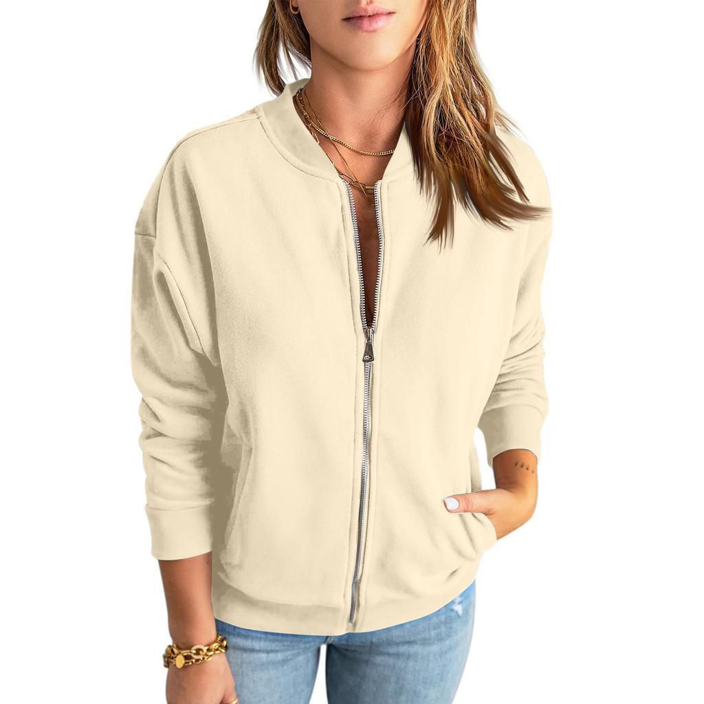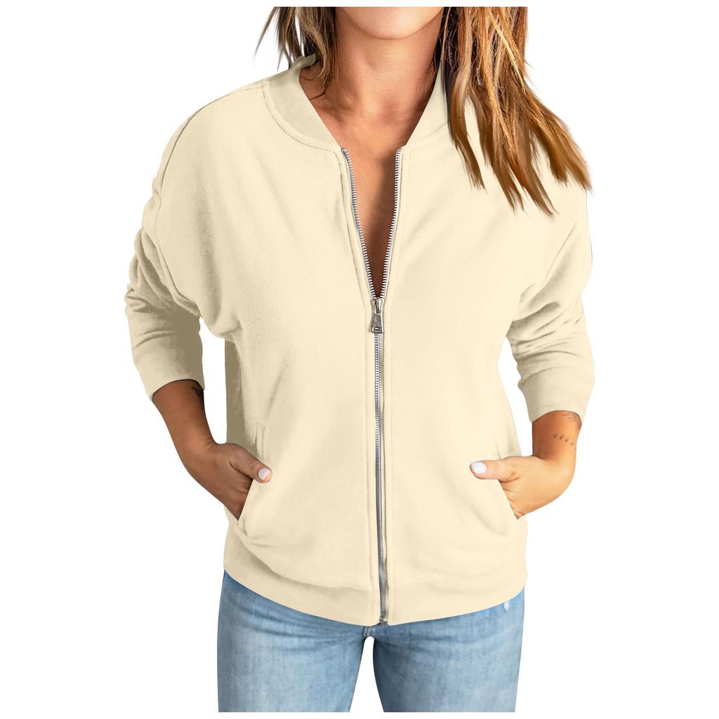 Женская повседневная толстовка, однотонная куртка на молнии, свободное пальто с длинными рукавами и карманом