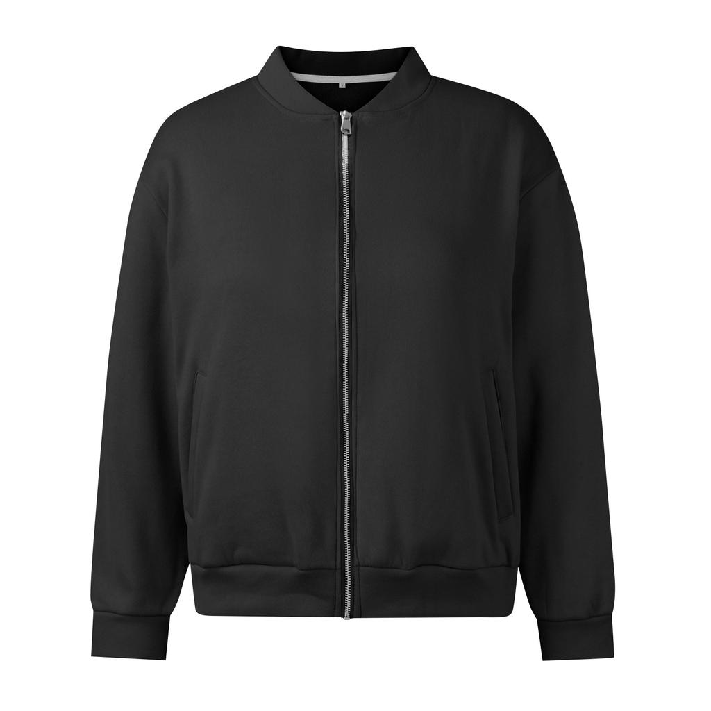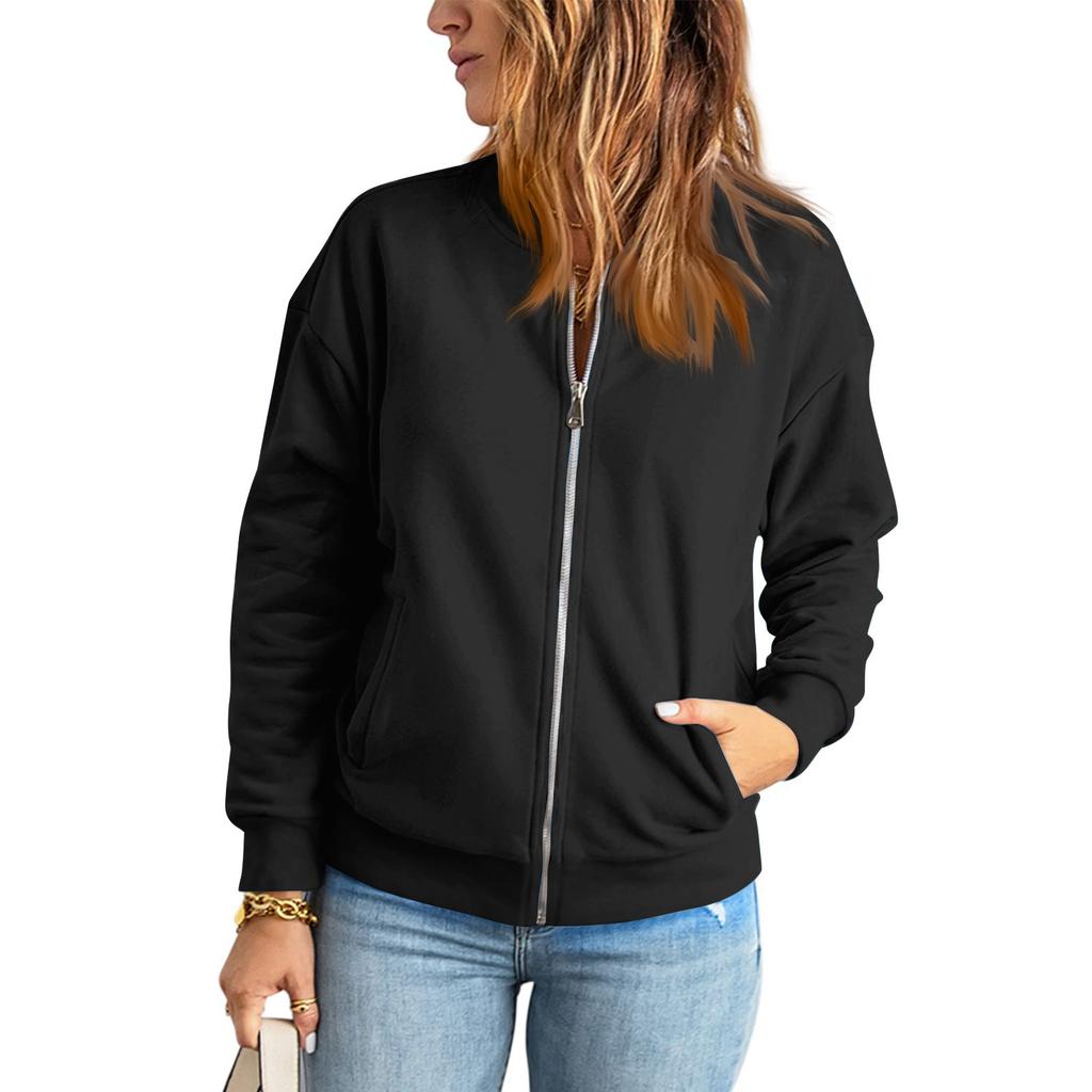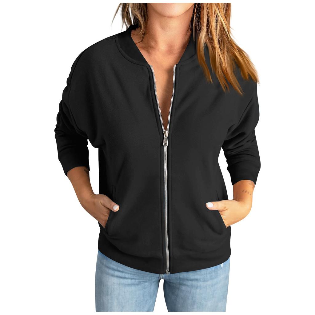 Женская повседневная толстовка, однотонная куртка на молнии, свободное пальто с длинными рукавами и карманом