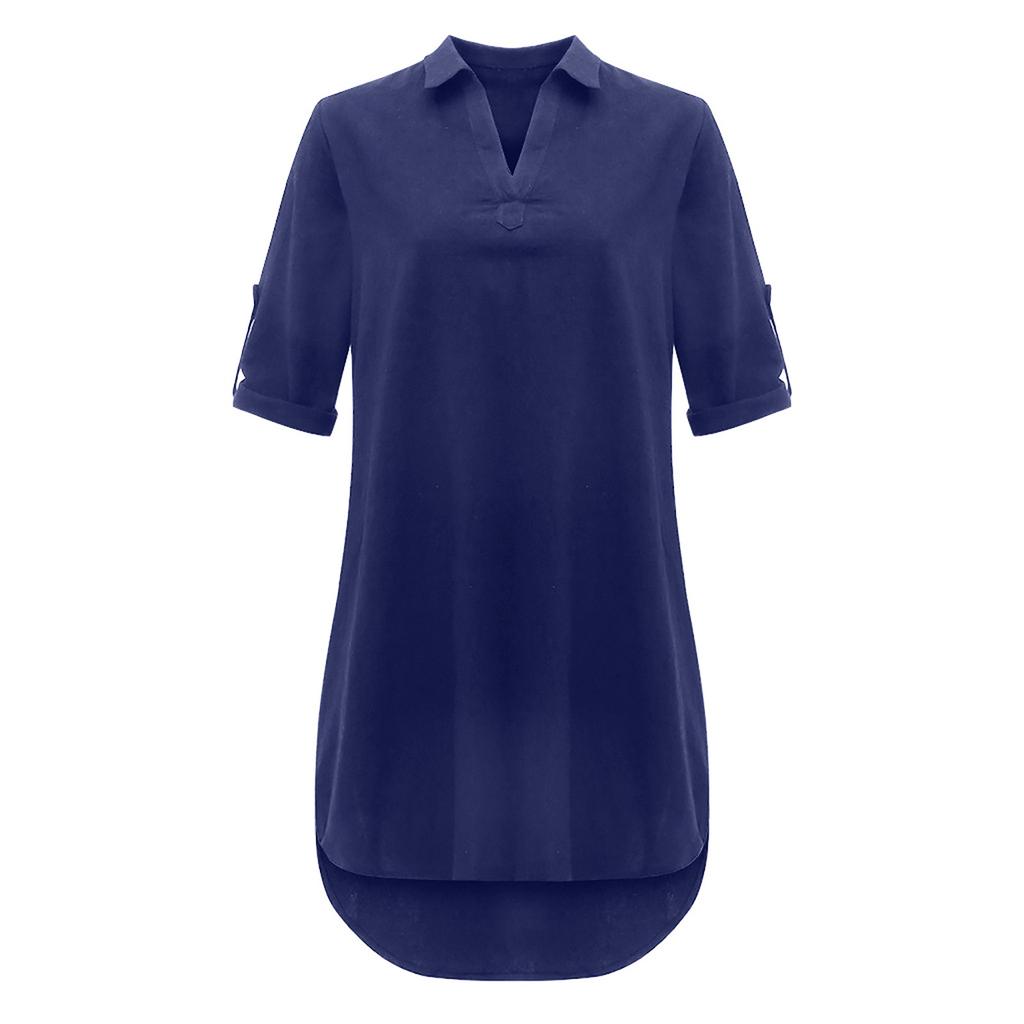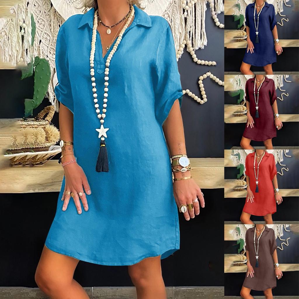 Модное женское свободное платье-рубашка больших размеров из однотонного хлопка и льна с отложным воротником