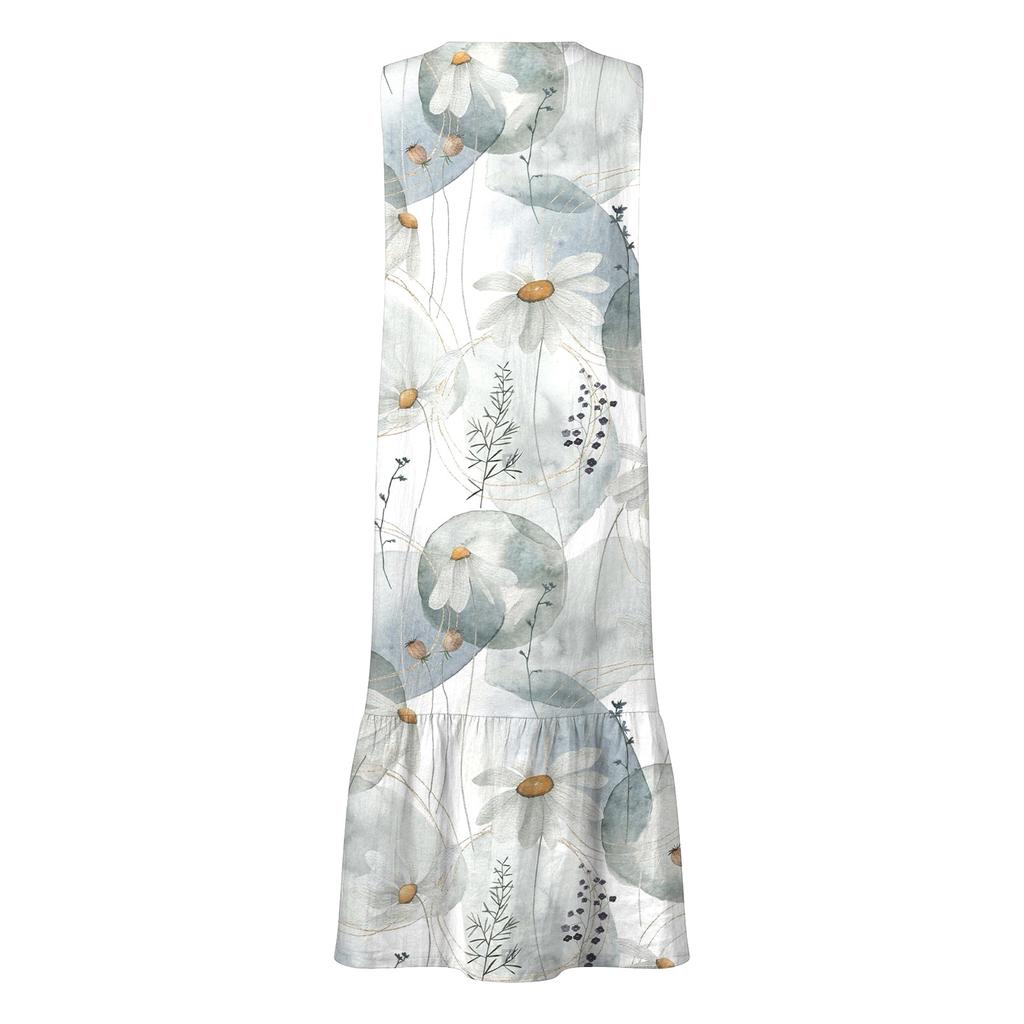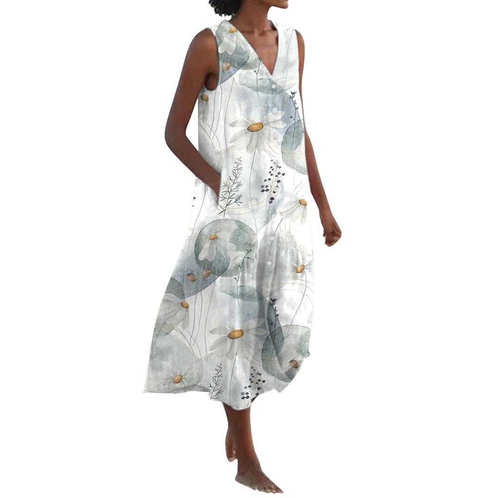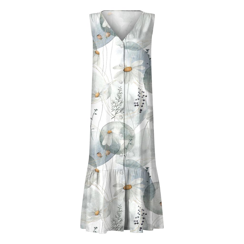 Женское летнее платье с принтом без рукавов и V-образным вырезом на пуговицах, повседневное короткое платье с карманами и карманами