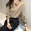 Женские шелковые рубашки с v-образным вырезом, однотонные топы, женские весенние модные атласные блузки с длинными рукавами, винтажный топ на пуговицах