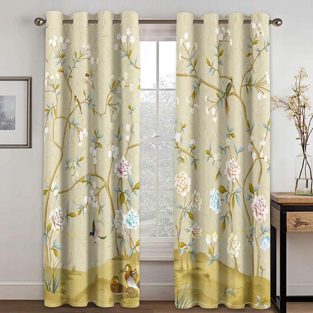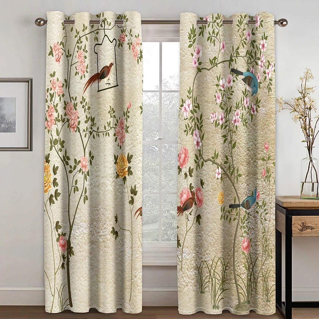 3D цифровой принт цветок птицы ветки клетки для птиц зеленый узор шторы для украшения спальни предмет оконная занавеска гостиная