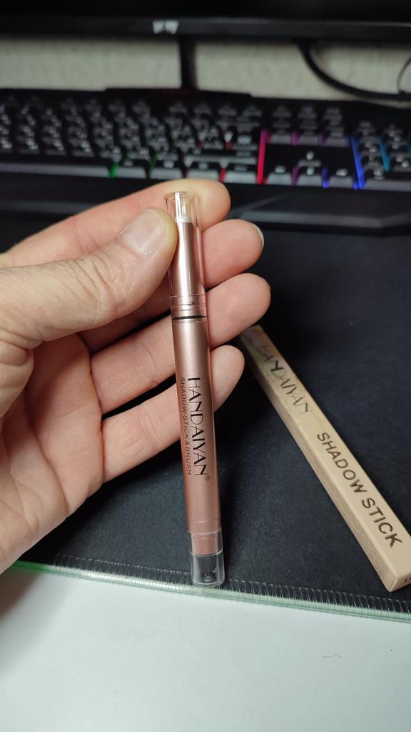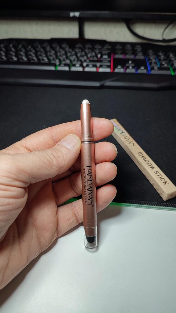 ✅Всех приветствую! Карандаш для век 2 in 1 добрался до РБ, Минска ровно за 1 месяц, что считаю неудовлетворительным результатом. ✅Поставляется карандаш в картонной запечатанной коробочке, внутри сам карандаш с колпачками с двух сторон. Что он из себя представляет: собственно сам гриф-тени, который выкручивается при вращении верхней части карандаша и нижняя часть со встроенной маленькой губки для растушовки нанесённого материала. ✅Выбранный нами цвет оказался просто огонь, смотрите коротенький, ознакомительный видео-ролик где я постарался показать на камеру этот замечательный оттенок с мягким интересным мерцанием. По качеству претензий нет, гриф рисует идеально с первой проводки, сильно давить нет абсолютно никакой необходимости. Товар однозначно заслуживает свою стоимость. ♥️