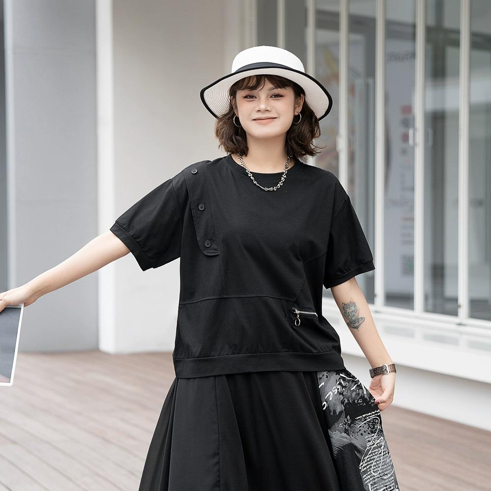Dimanaf 2024 Женская футболка с женскими пуговицами, однотонные эластичные хлопковые свободные топы с короткими рукавами и футболки с круглым вырезом
