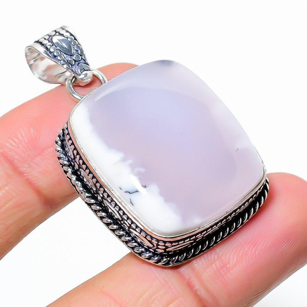 Подарочный кулон из стерлингового серебра 925 пробы с натуральным дендритовым опалом диаметром 1,85 дюйма