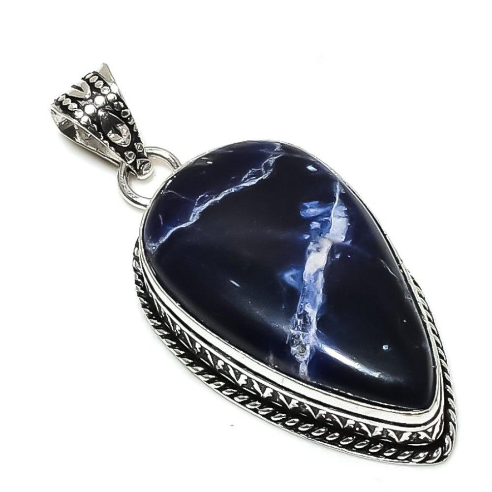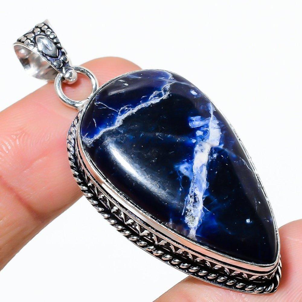 Подвеска ручной работы из стерлингового серебра 925 пробы с натуральным драгоценным камнем содалитом 2,21 дюйма