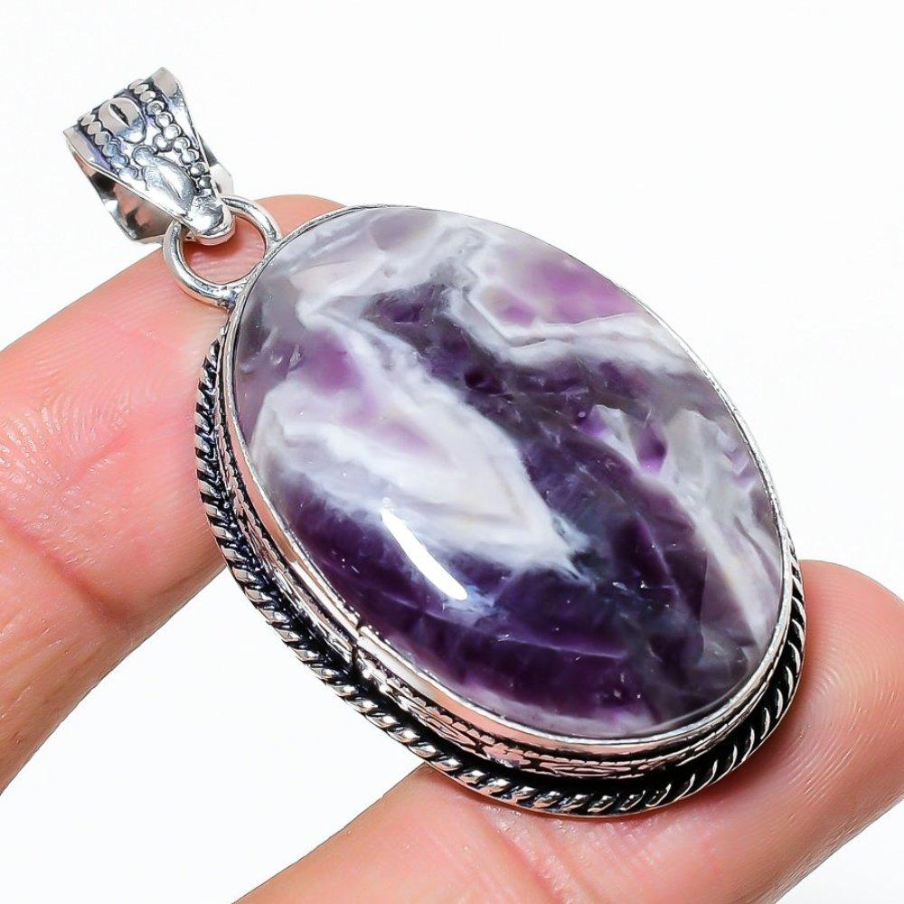 Подарочный кулон из стерлингового серебра 925 пробы с натуральным аметистом и шевроном, 2,17 дюйма