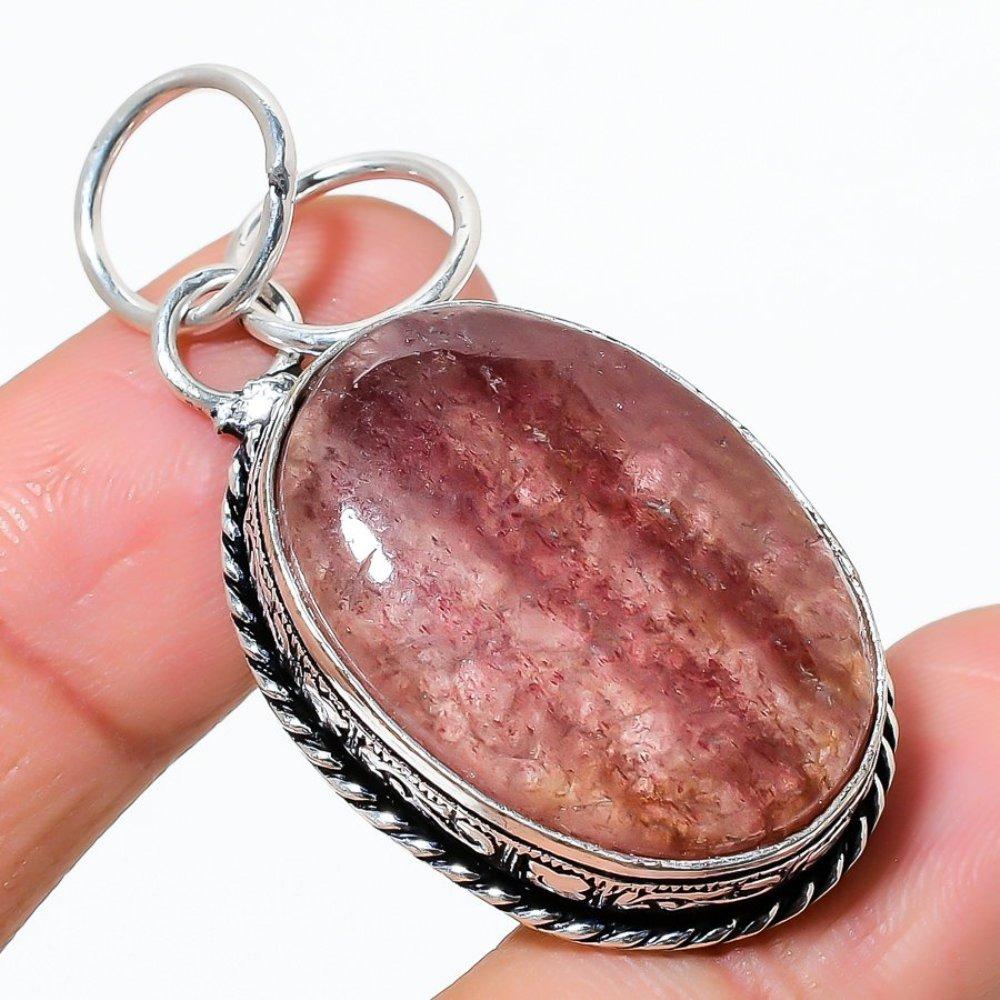Подвеска из стерлингового серебра 925 пробы с натуральным клубничным кварцем длиной 2,01 дюйма