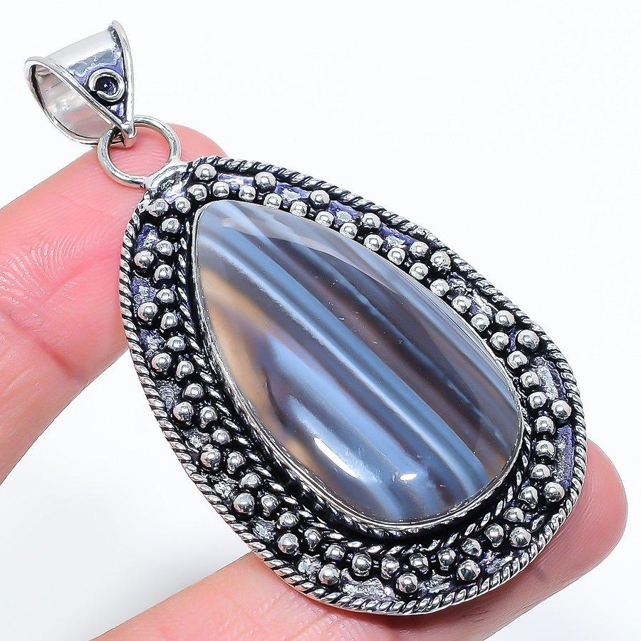 Подвеска из стерлингового серебра 925 пробы с натуральным полосатым камнем ручной работы 2,76 дюйма