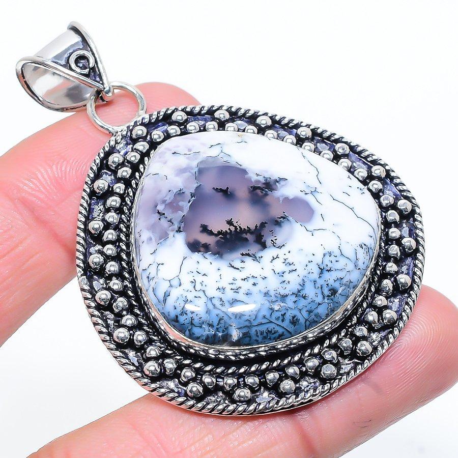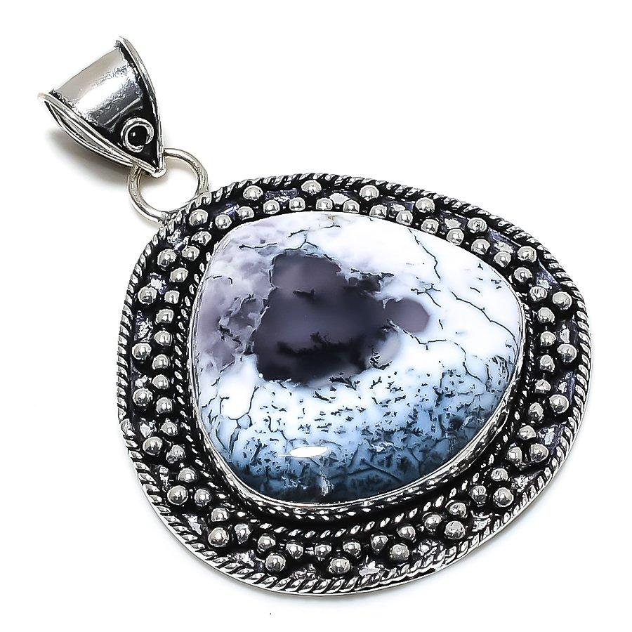 Подарочный кулон из стерлингового серебра 925 пробы с натуральным дендритовым опалом 2,44 дюйма b4C89