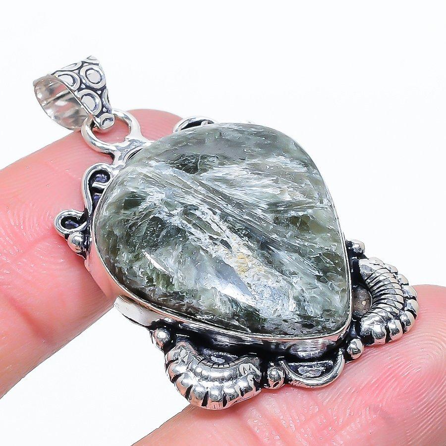 Подарочный кулон из стерлингового серебра 925 пробы с натуральным камнем Ларвикит 1,77 дюйма