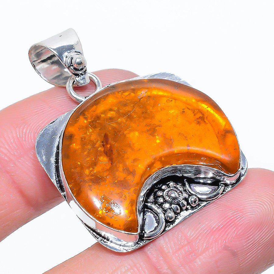 Подвеска ручной работы из стерлингового серебра 925 пробы с натуральным балтийским янтарем 1,54 дюйма