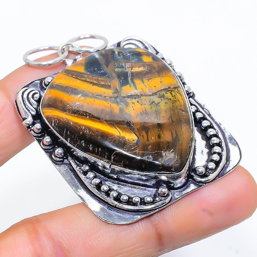 Natural Tiger Eye Gemstone Handmade 925 Sterling Silver Pendant 2.36" e1q48