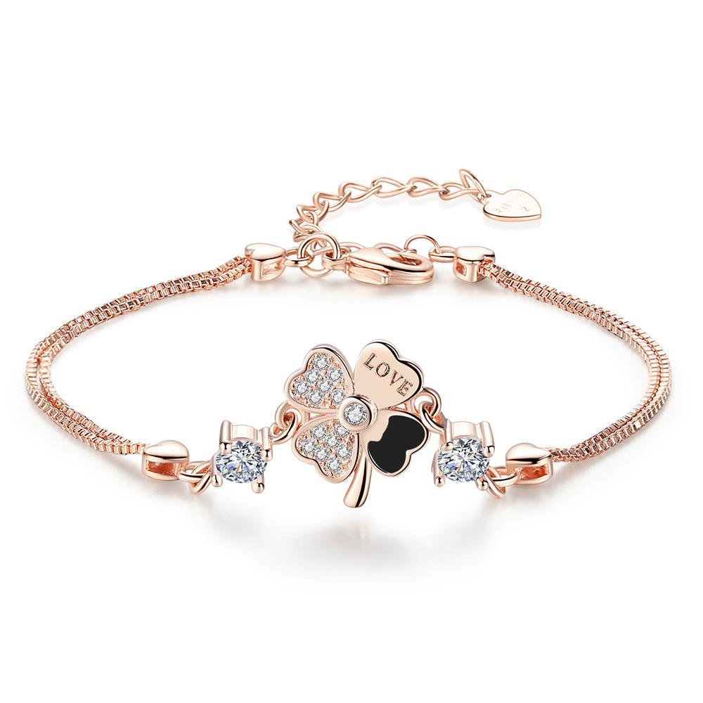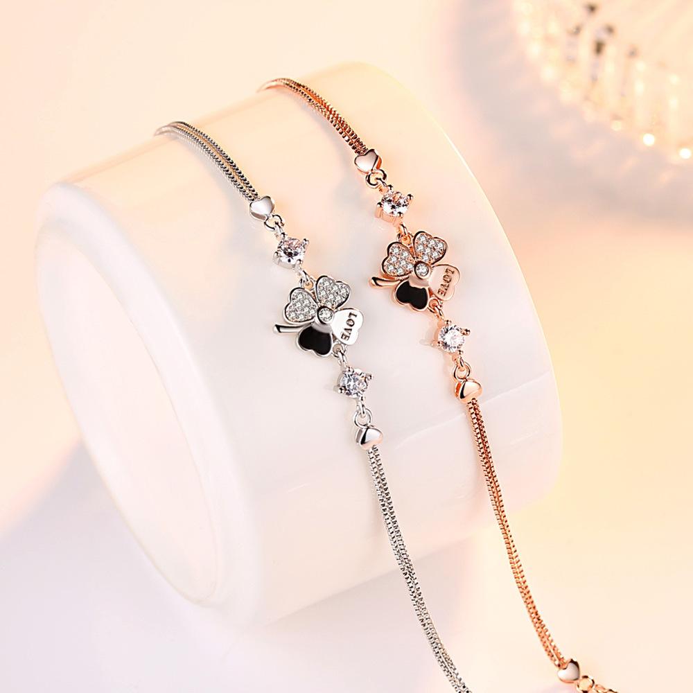 Женский браслет Lucky с четырьмя листьями и цветами и травой, посеребренный, японский и корейский, милое и простое изделие ручной работы