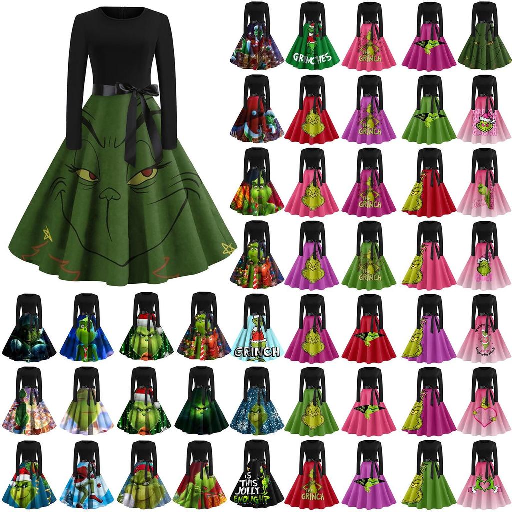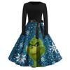 Женское рождественское расклешенное платье с принтом для женщин, платье с длинным рукавом, вечерние повседневные платья