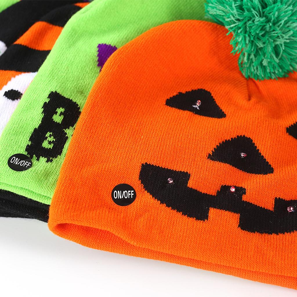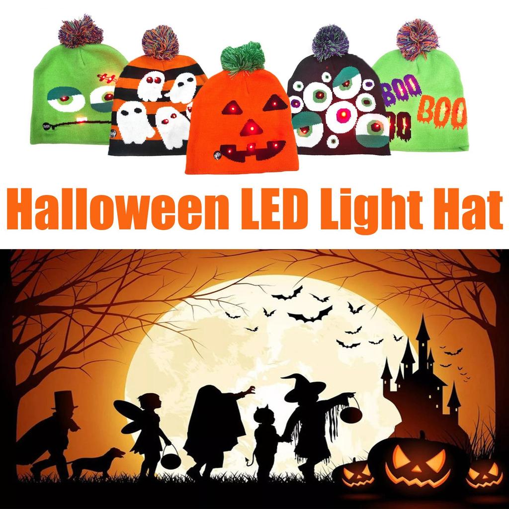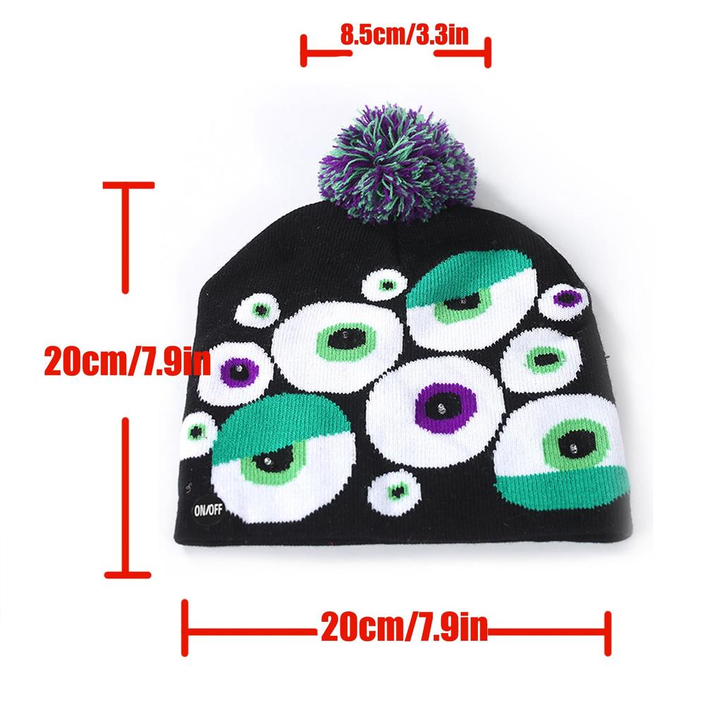 Забавная светодиодная вязаная шапка с подсветкой на Хэллоуин, новинка, шляпа унисекс, детская шляпа, декорации, вечерние шляпы(батарея в комплекте)
