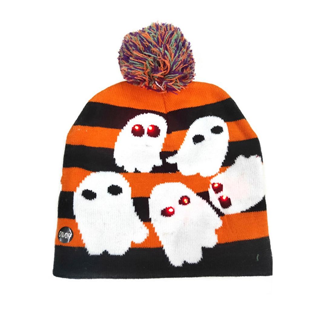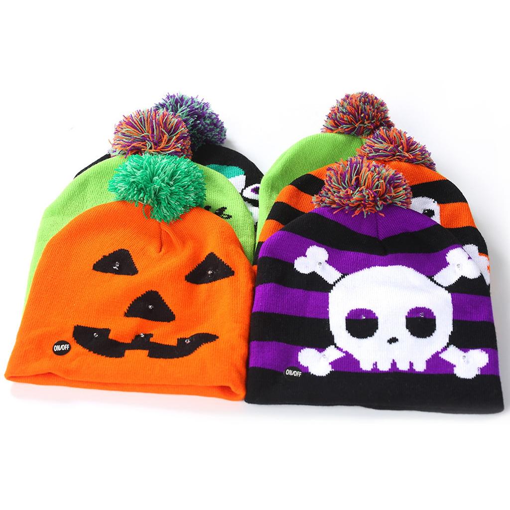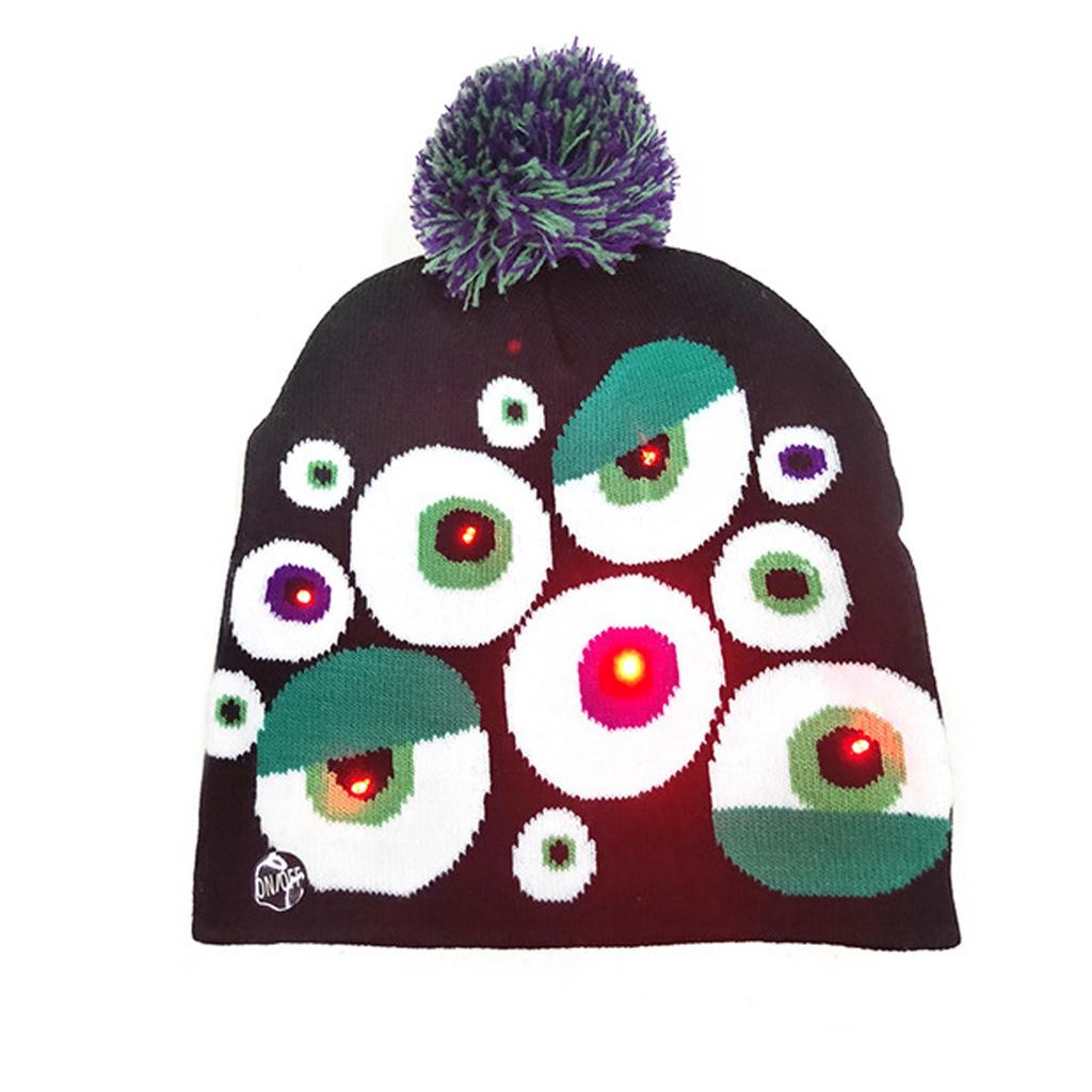 Забавная светодиодная вязаная шапка с подсветкой на Хэллоуин, новинка, шляпа унисекс, детская шляпа, декорации, вечерние шляпы(батарея в комплекте)