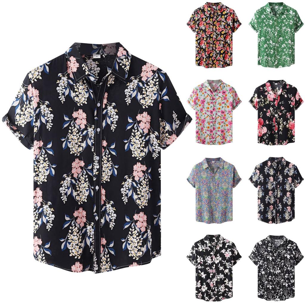 Мужская летняя повседневная рубашка с цветочным принтом в гавайском стиле с коротким рукавом для пляжного отдыха — купить товар онлайн с бесплатной доставкой по всему миру!