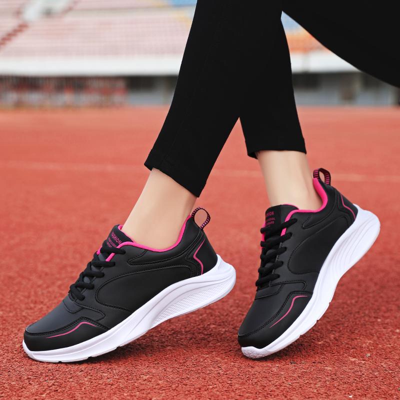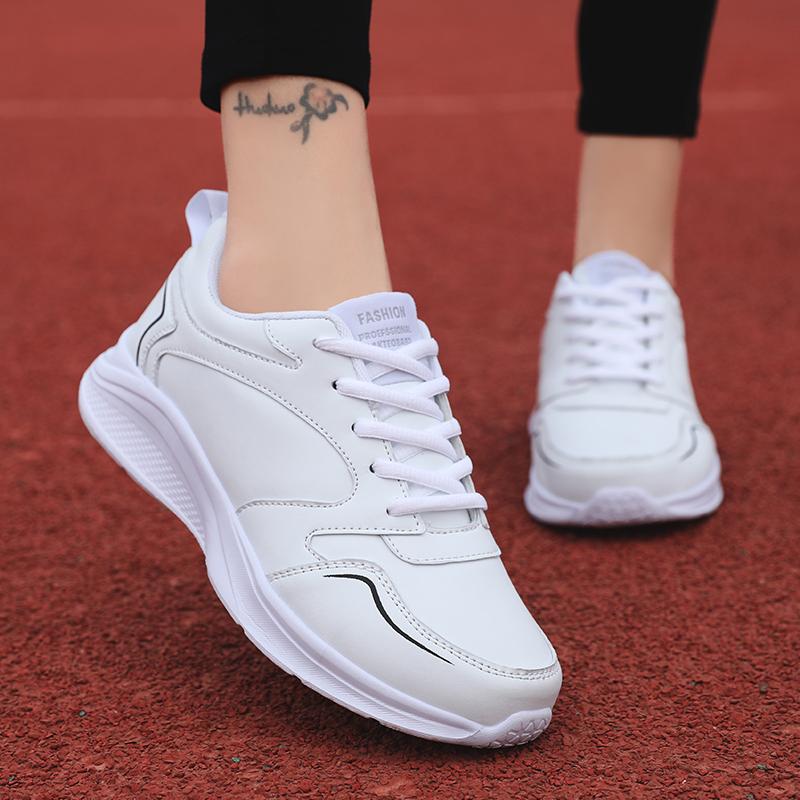 Весенне-осенние женские кожаные кроссовки, ультралегкая женская спортивная обувь большого размера
