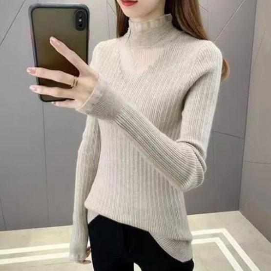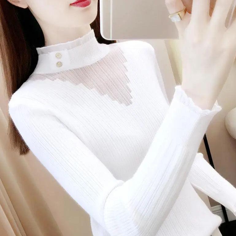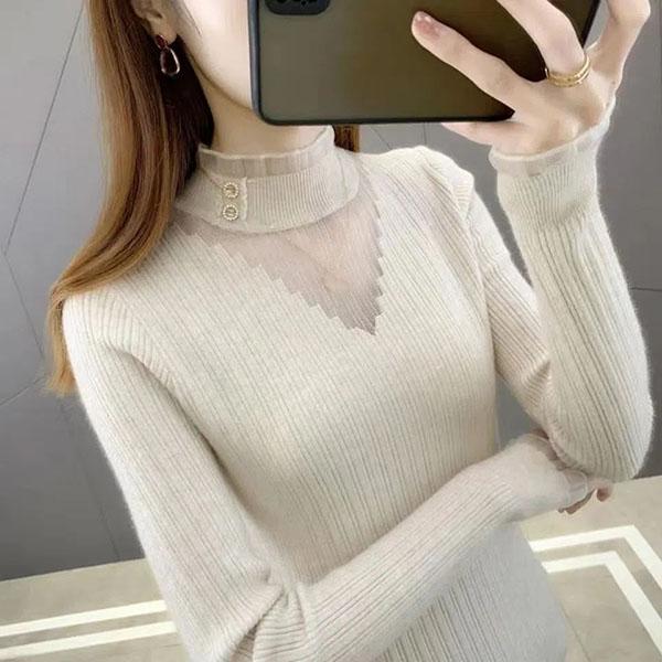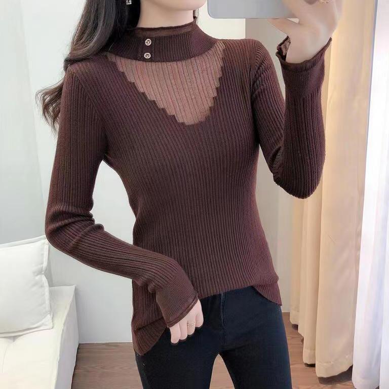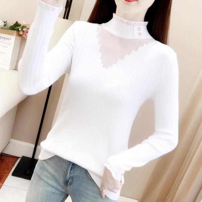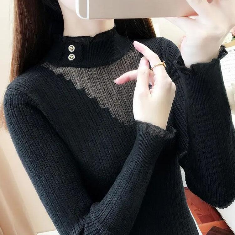 Кружевные тонкие джемперы с полувысоким воротником, узкие джемперы большого размера, весенне-осенние вязаные свитера с сетчатой строчкой, топы