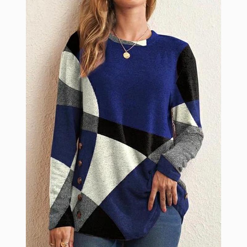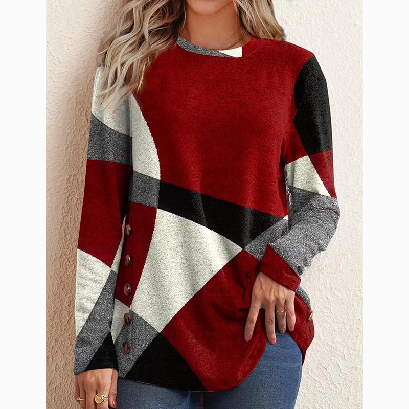 Модная женская футболка с круглым вырезом и контрастным принтом, длинная свободная повседневная футболка, топы, офисные женские футболки больших размеров, 24036