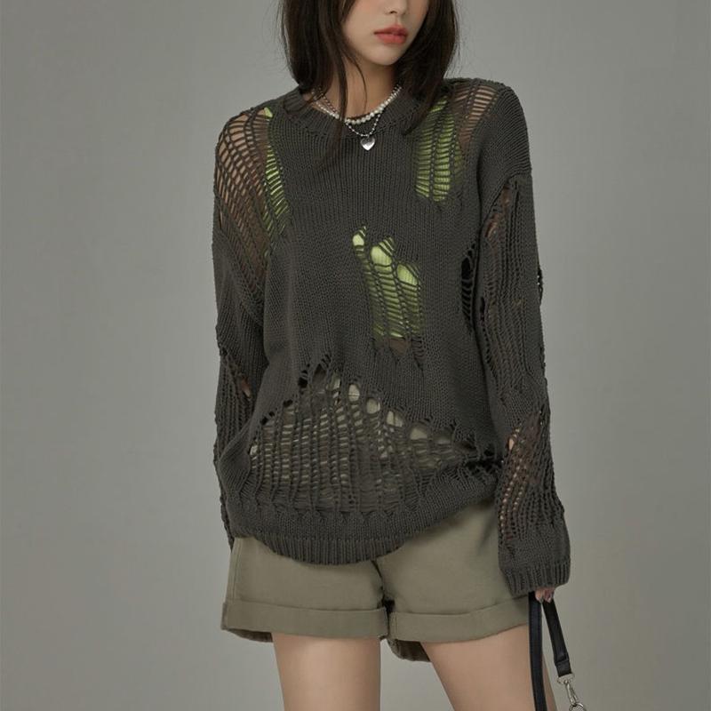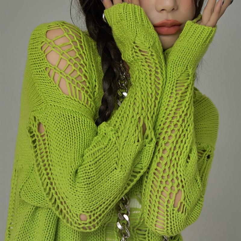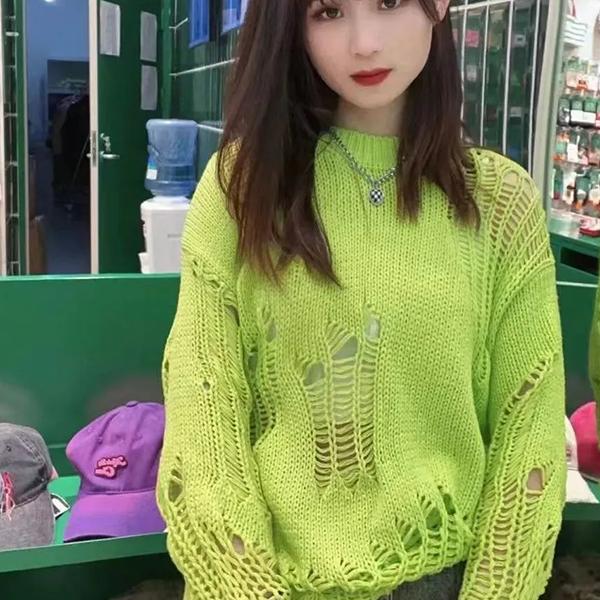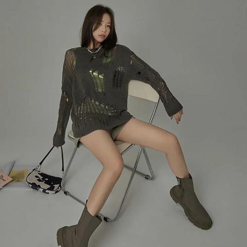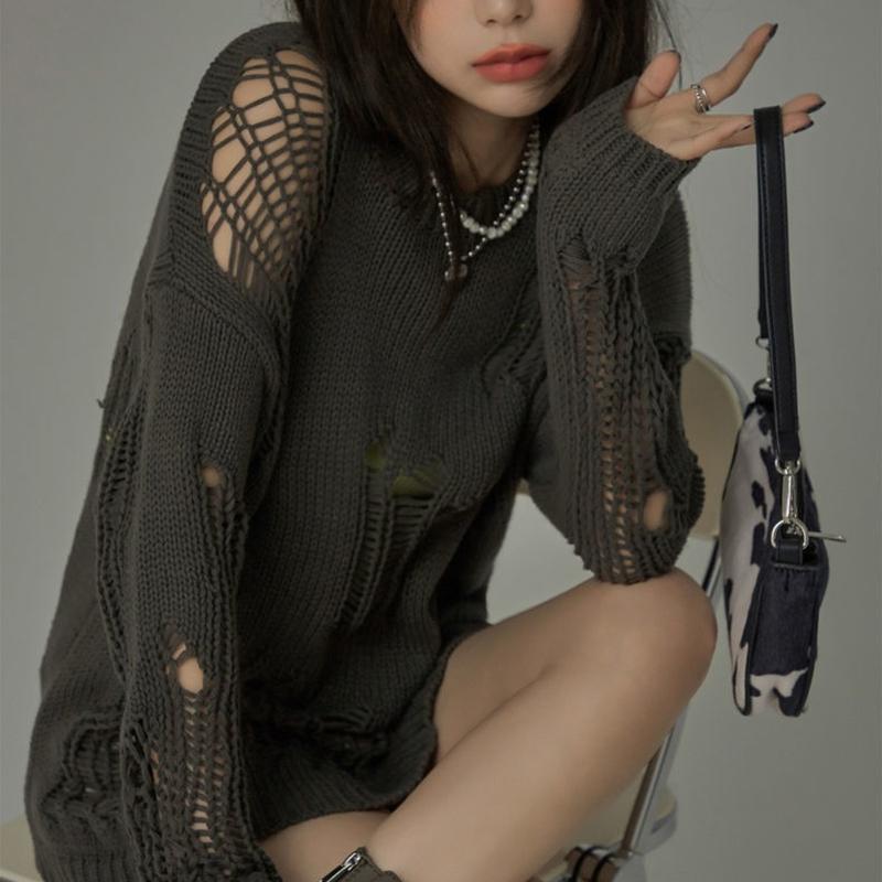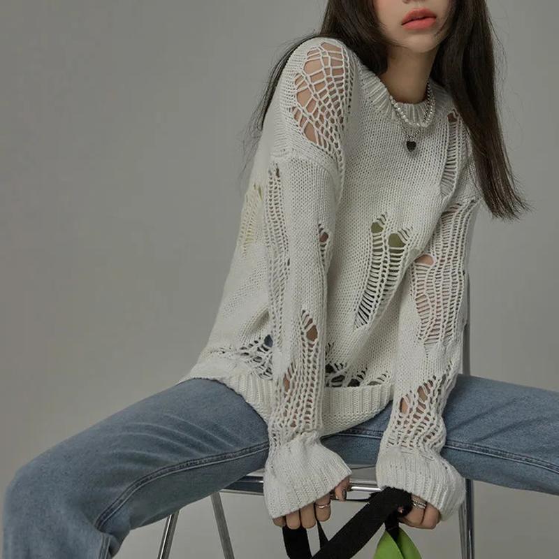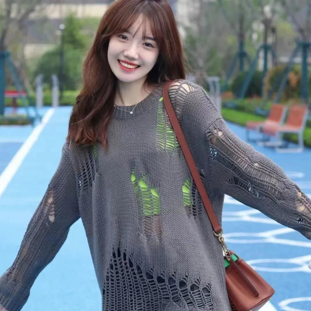 WTEMPO Женские свитера весна-осень в стиле готик-панк для девочек, трикотажные топы в стиле Харадзюку 2000 года с вырезами, свободные свитера в уличном стиле
