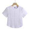 Лето 2024, новая рубашка с короткими рукавами и круглым вырезом, футболка Lotus Joint, майка с половиной рукавов, короткая модель с высокой талией, тонкая, модная и спортивная