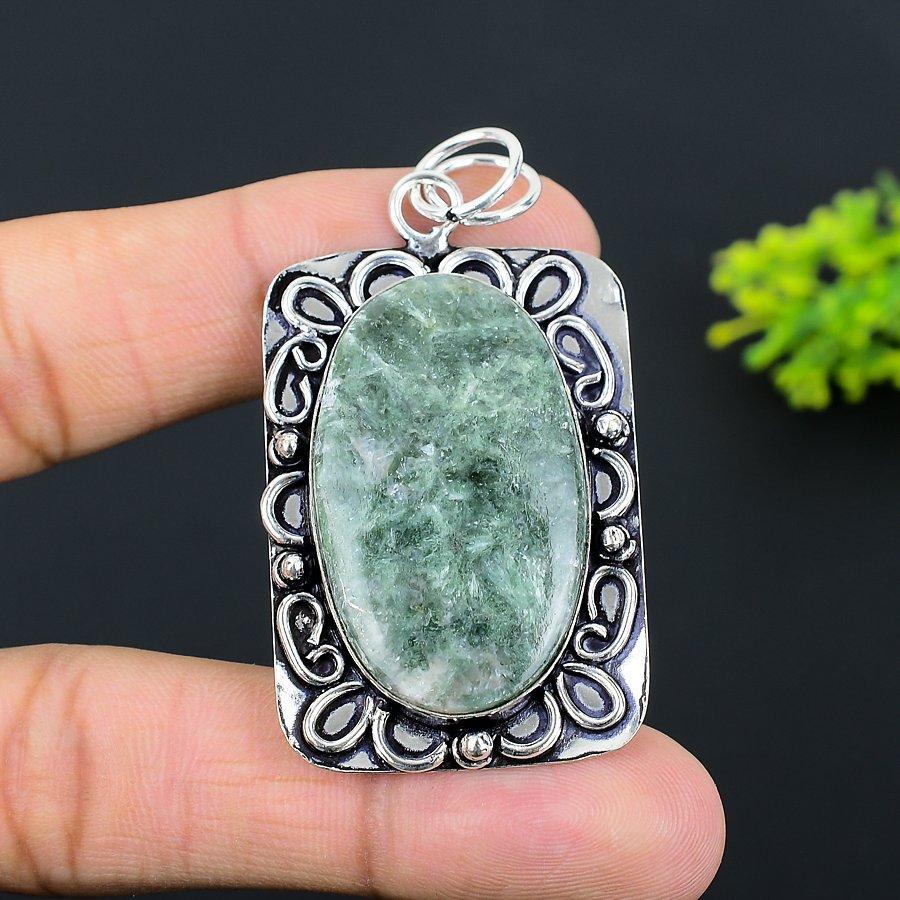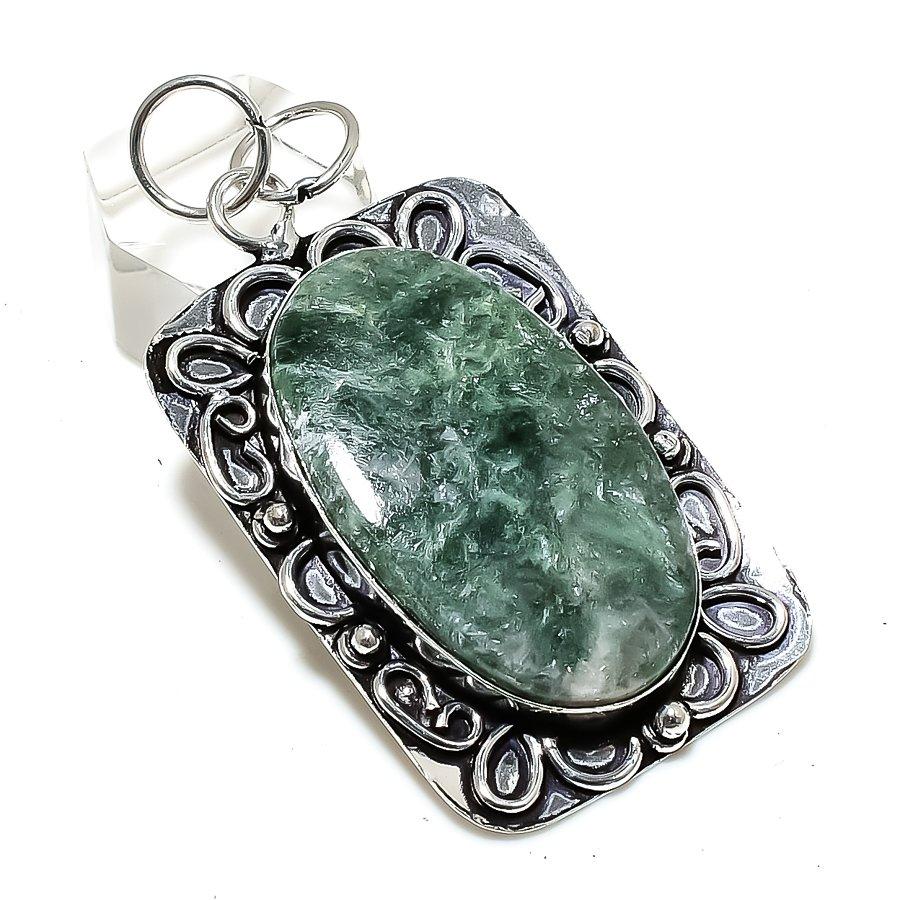 Подвеска из стерлингового серебра 925 пробы с натуральным серафинитом ручной работы 2,48 дюйма