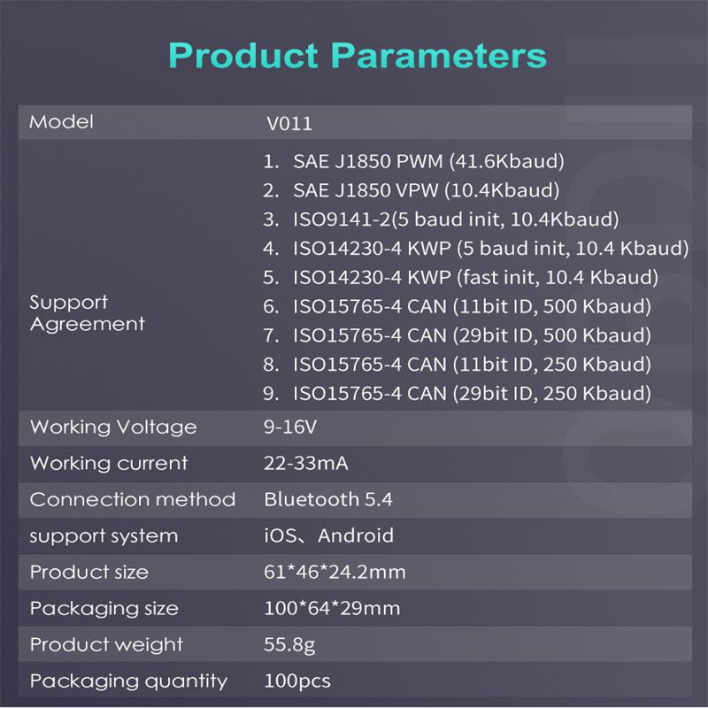 V011 Универсальный автомобильный диагностический сканер OBD IIДиагностический сканер для обнаружения неисправностей автомобиля