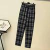 Женские зимние плюшевые повседневные брюки в клетку с высокой талией, свободные теплые длинные шаровары большого размера