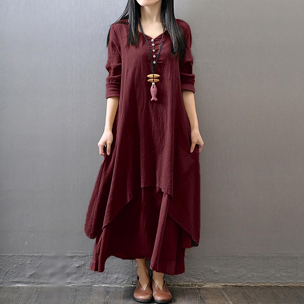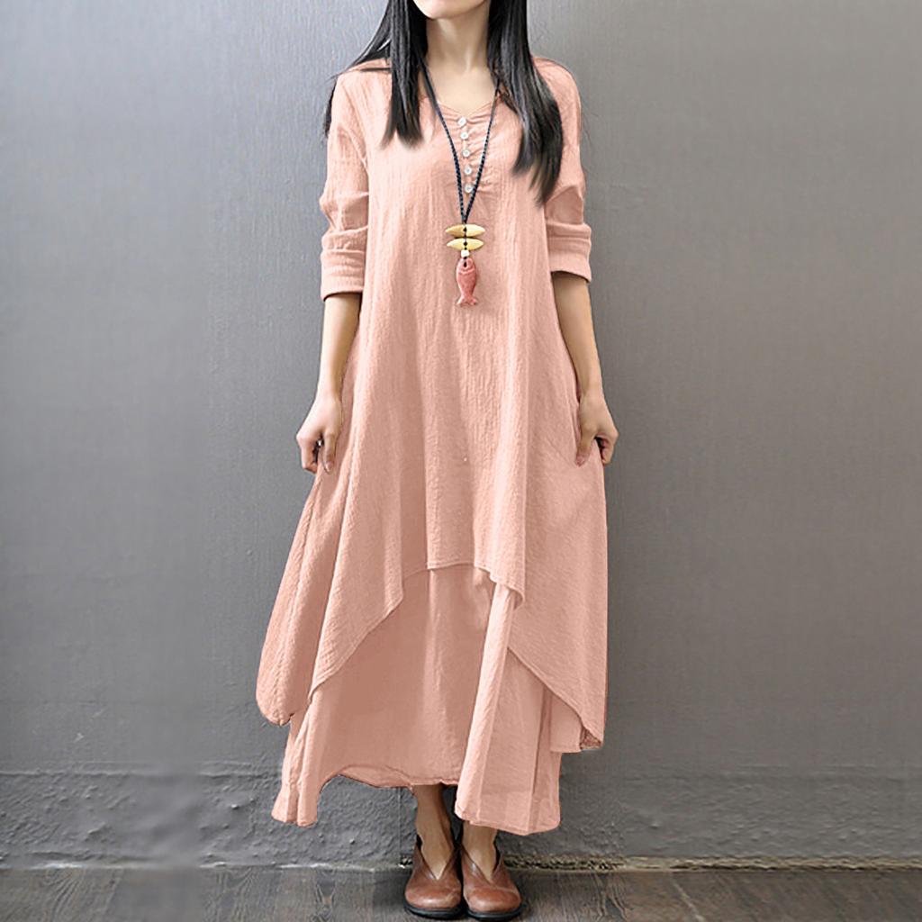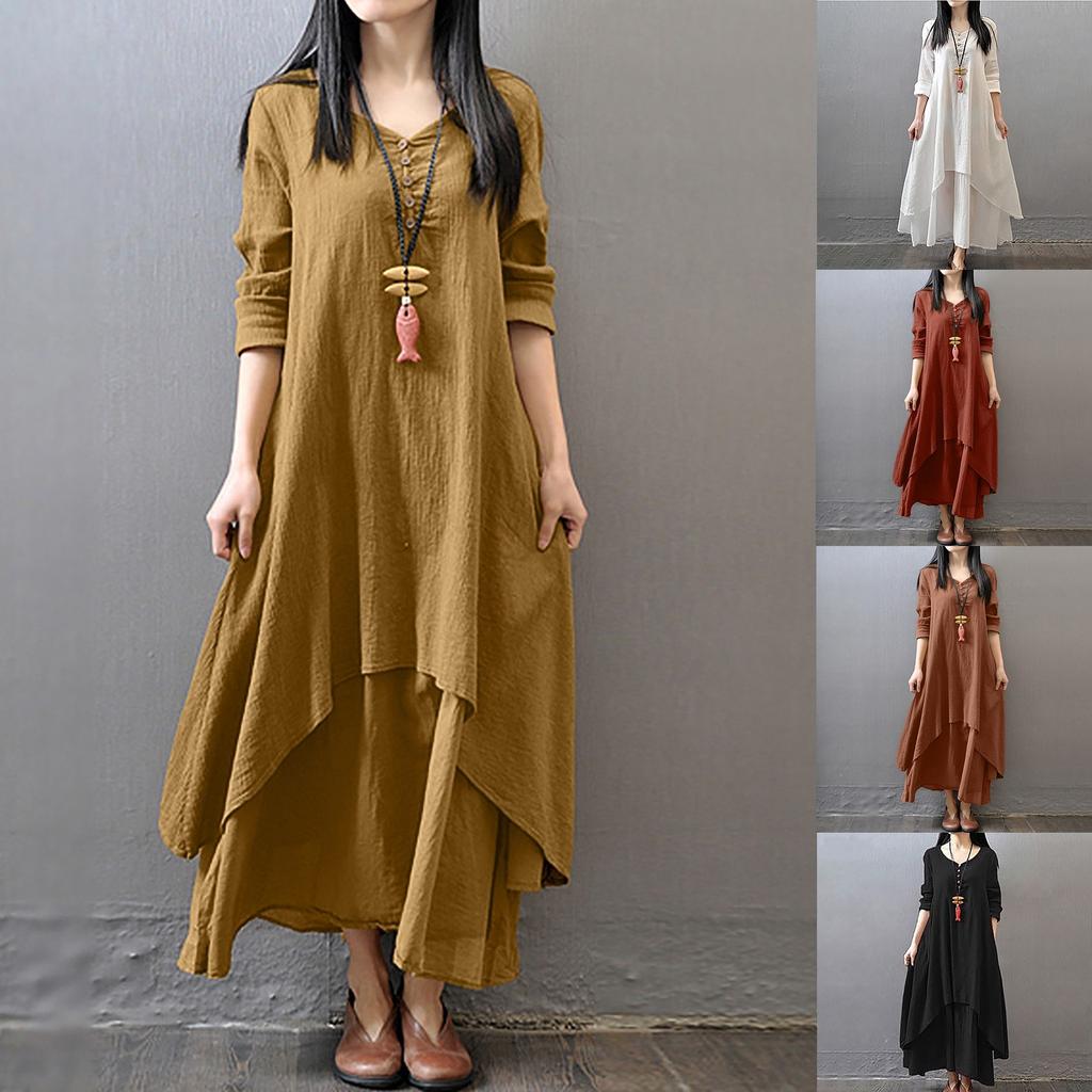 Женское повседневное свободное платье из хлопка и льна с длинным рукавом в стиле бохо, нерегулярное платье