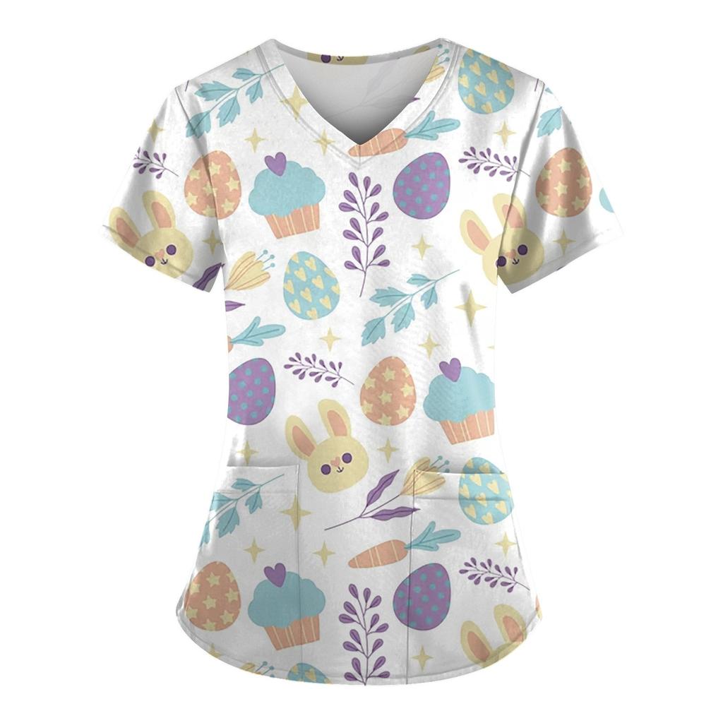 Рабочая форма больших размеров с принтом, топы для женщин, забавные футболки с v-образным вырезом и короткими рукавами, рабочая одежда, футболка с карманами