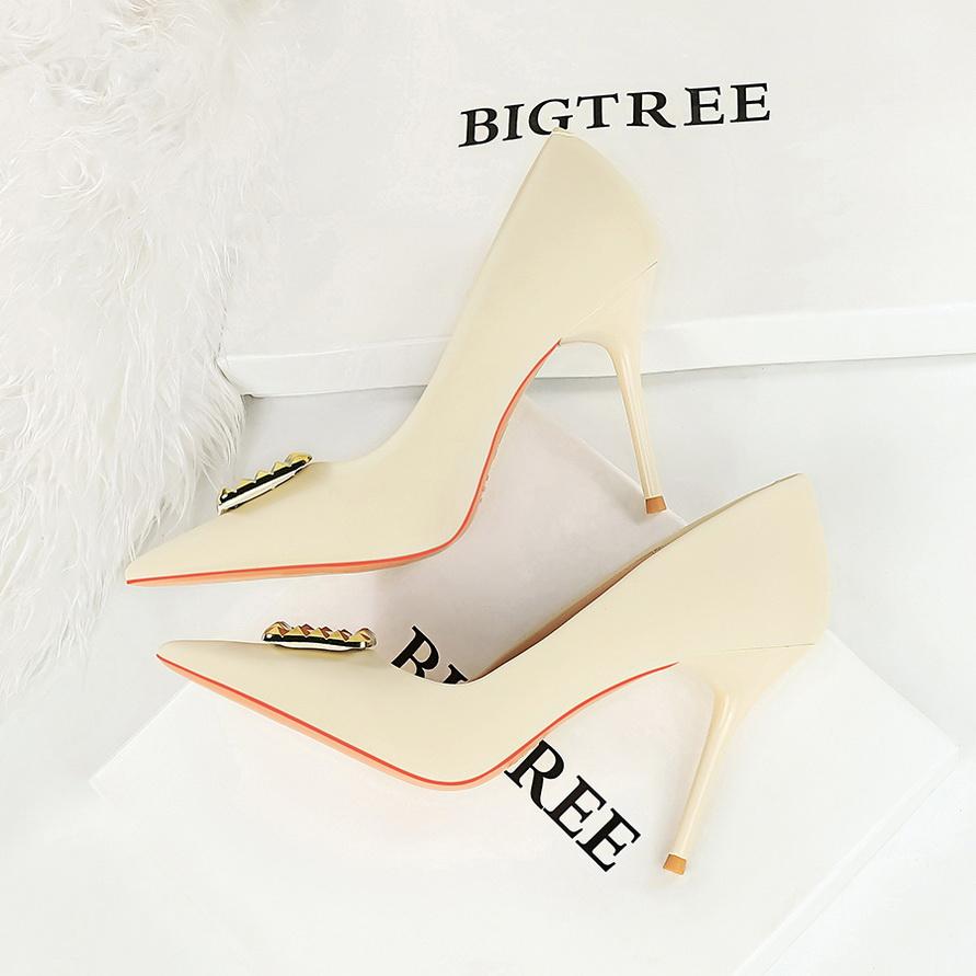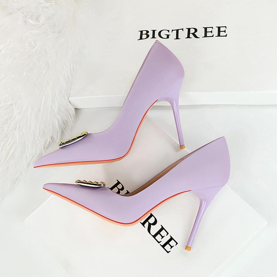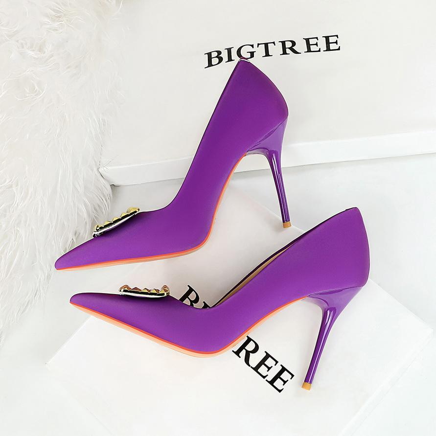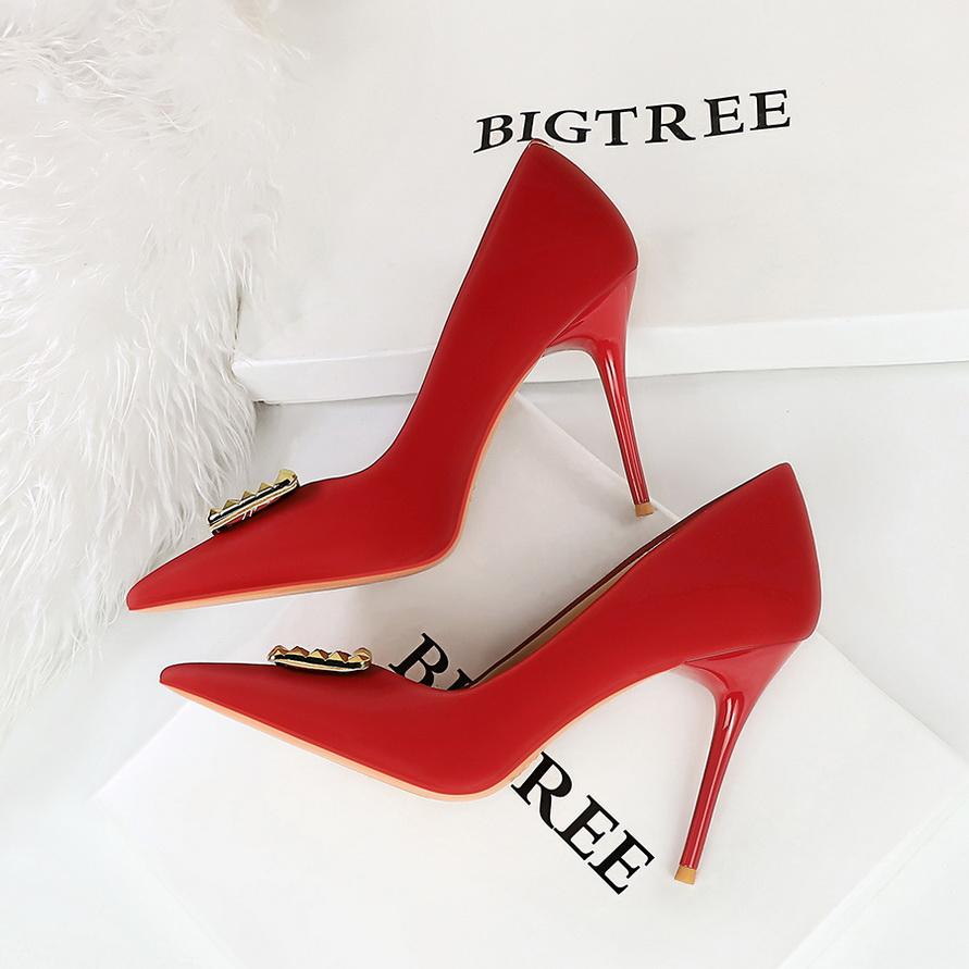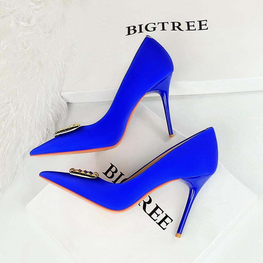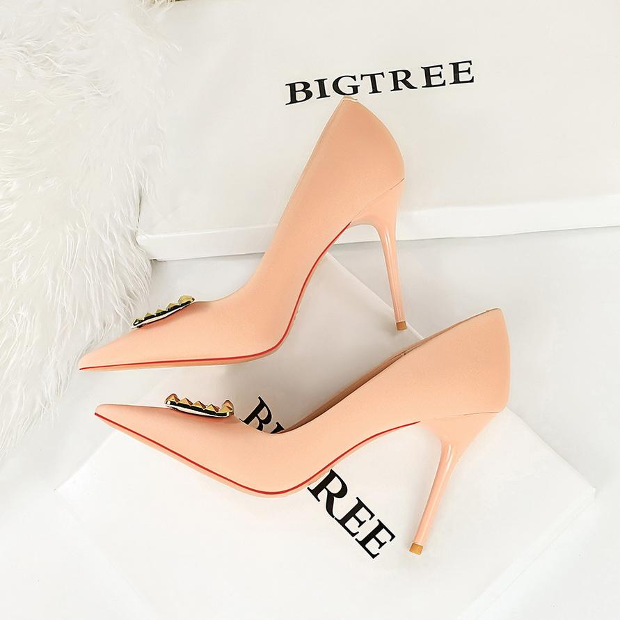 Женские модные банкетные туфли на высоком тонком каблуке, высокие каблуки с острым носком и металлической пряжкой, декоративные одинарные туфли