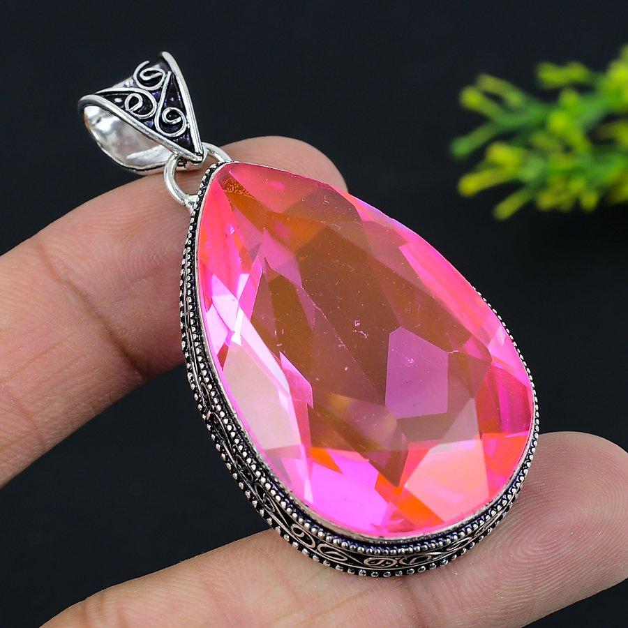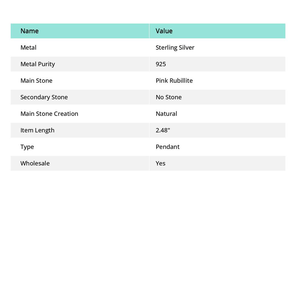 Подвеска из стерлингового серебра 925 пробы с натуральным розовым рубиллитом 2,48 дюйма