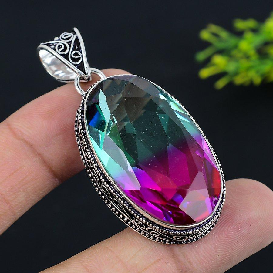 Подвеска из натурального двухцветного турмалина из стерлингового серебра 925 пробы 2,25 дюйма