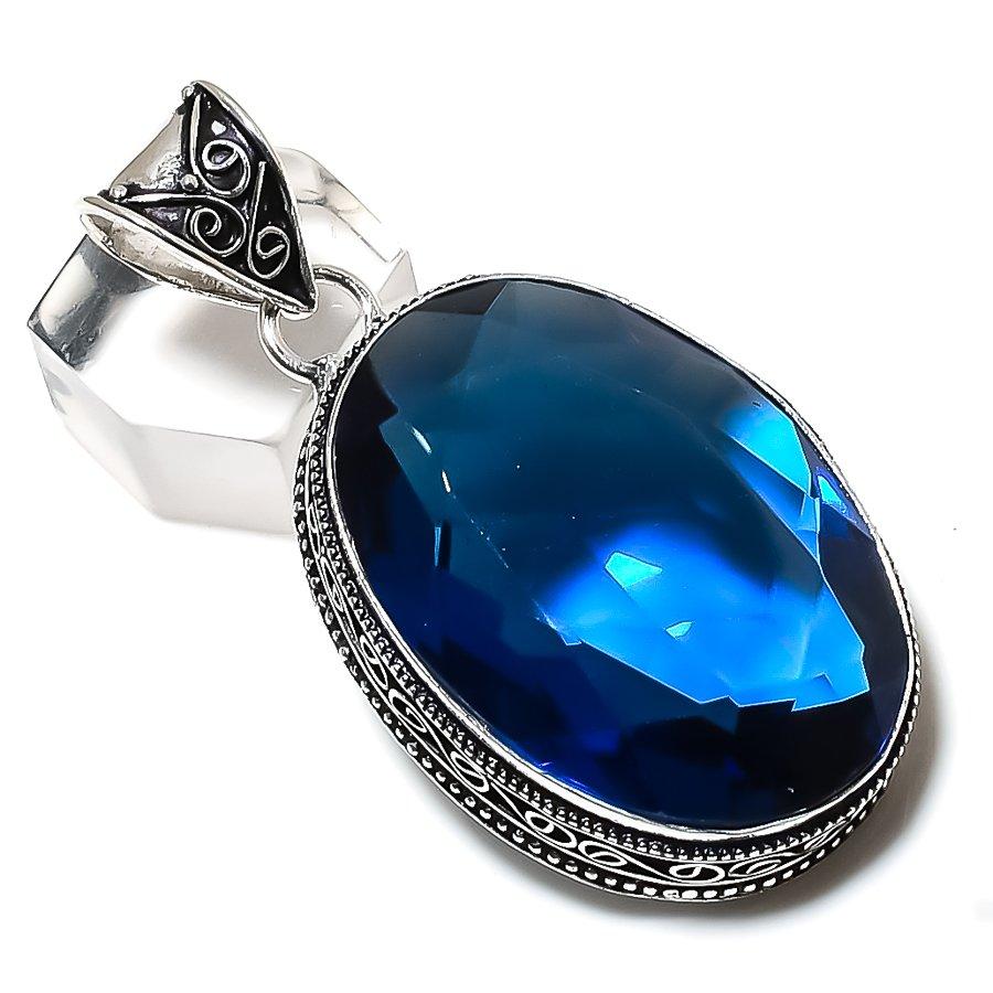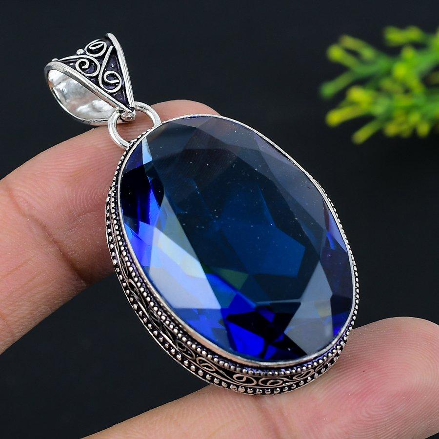 Подвеска из стерлингового серебра 925 пробы с натуральным лондонским голубым топазом 2,25 дюйма