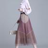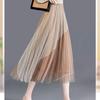 Элегантная женская тюлевая юбка, корейская модная сетчатая белая трапециевидная женская плиссированная юбка, летняя высокая талия