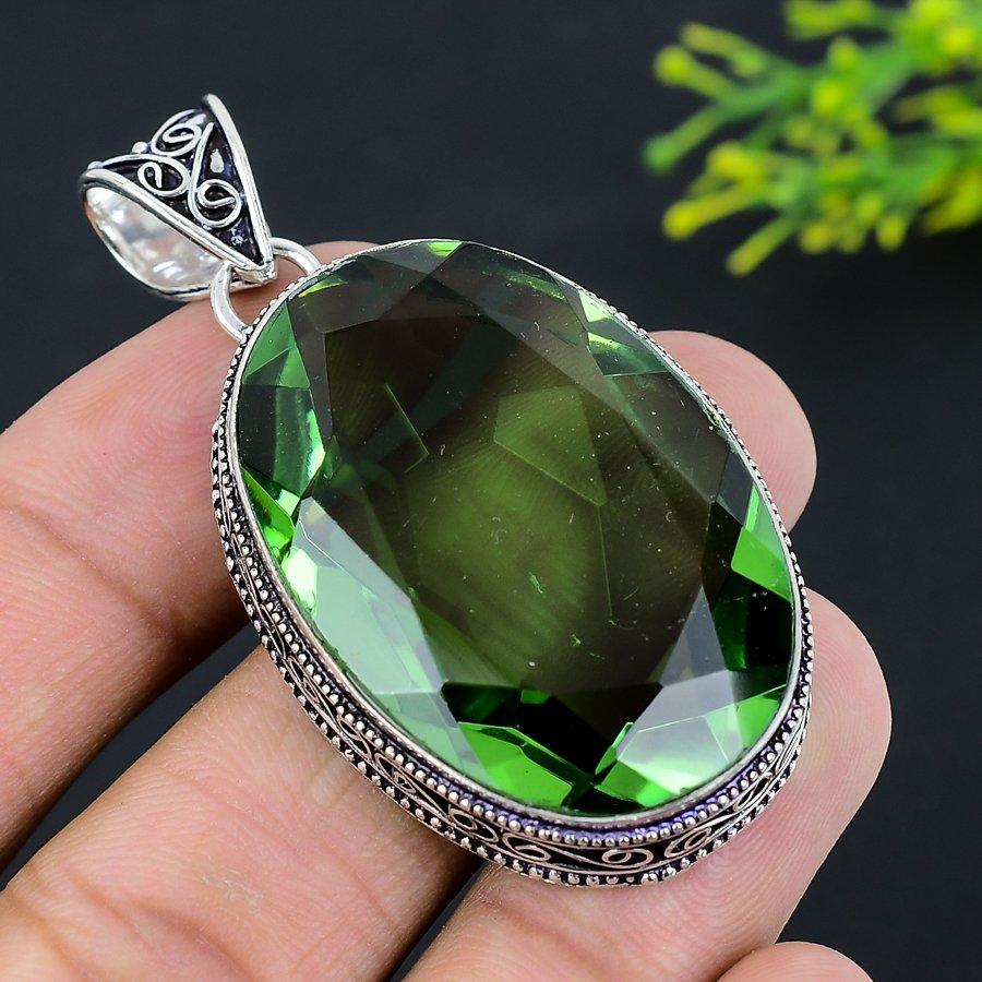 Подарочный кулон ручной работы из стерлингового серебра 925 пробы с натуральным драгоценным камнем перидот 2,29 дюйма