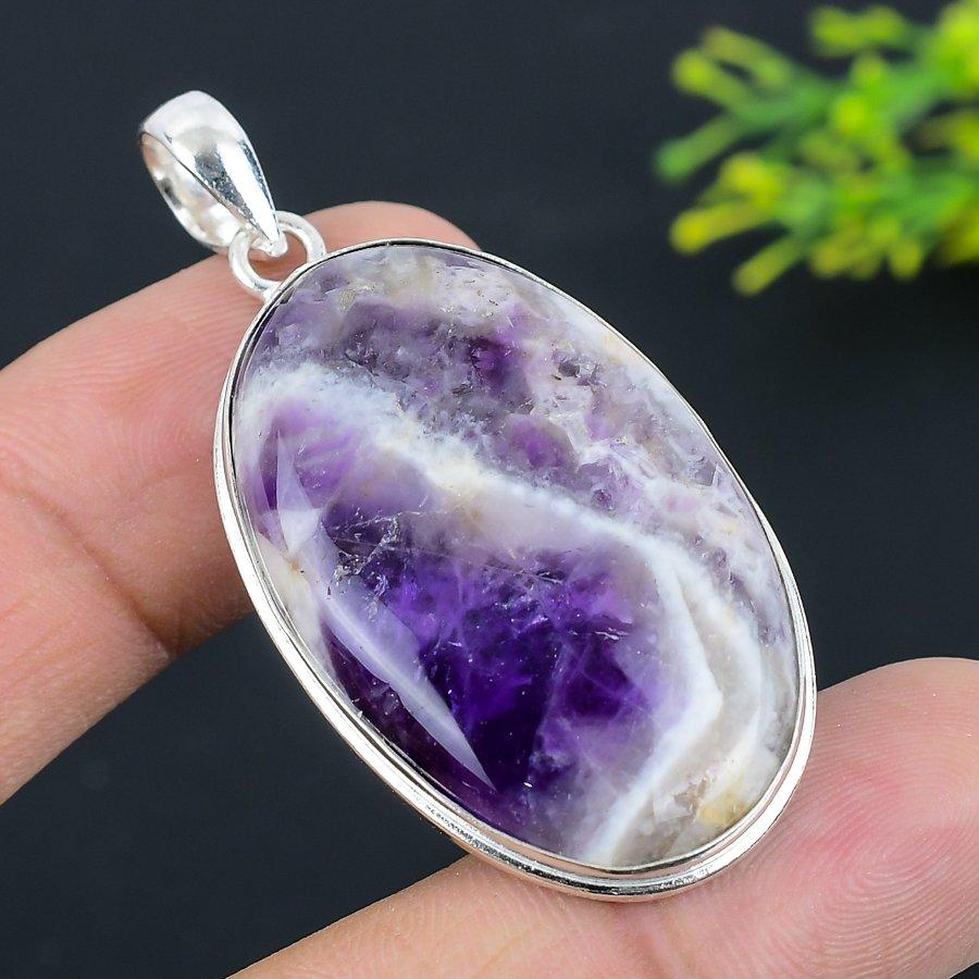 Подарочный кулон из стерлингового серебра 925 пробы с натуральным аметистом и шевроном, 2,17 дюйма