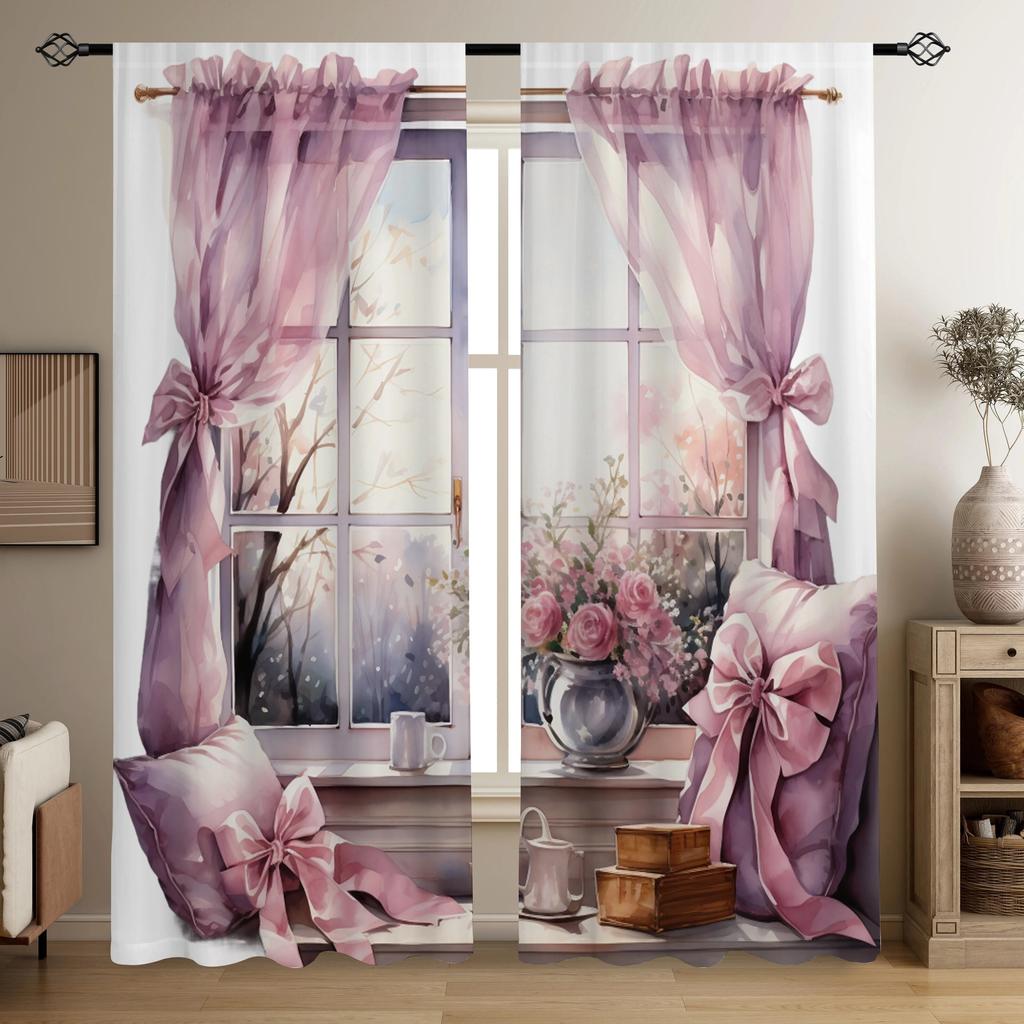 2 шт., полупрозрачные шторы с акварельным цветочным принтом, многосценные стержни, карманный декор, шторы для гостиной, спальни, домашний декор