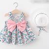 Детское платье, весенне-летняя детская одежда на слинге, одежда для маленьких девочек, плиссированное платье трапециевидной формы без рукавов с цветочным принтом для девочек