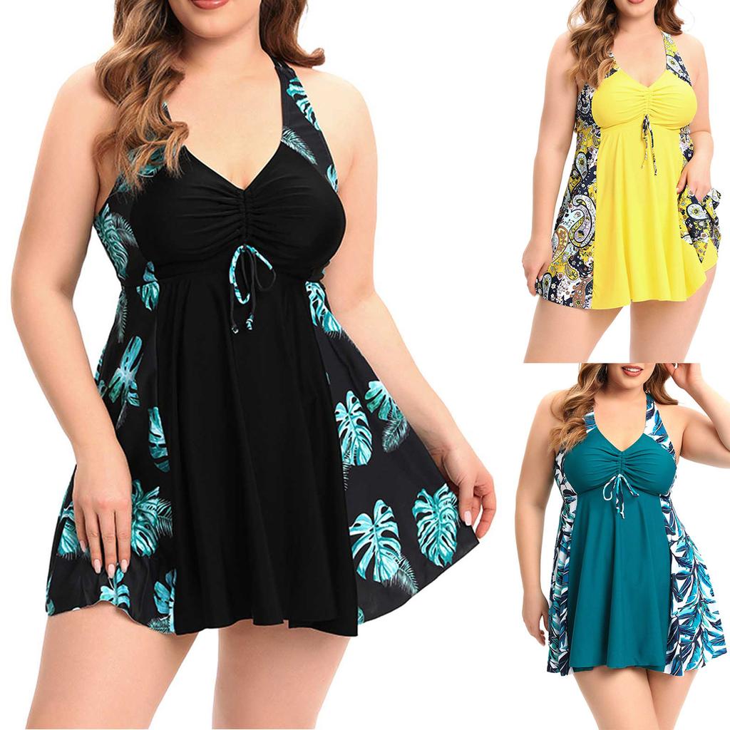 Женская юбка больших размеров с разрезом на шнурке, купальный костюм с подкладкой для бюстгальтера и без стального бюстгальтера