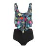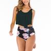 Бикини с рюшами и принтом закрывает живот и демонстрирует тонкий разделенный купальник для женщин