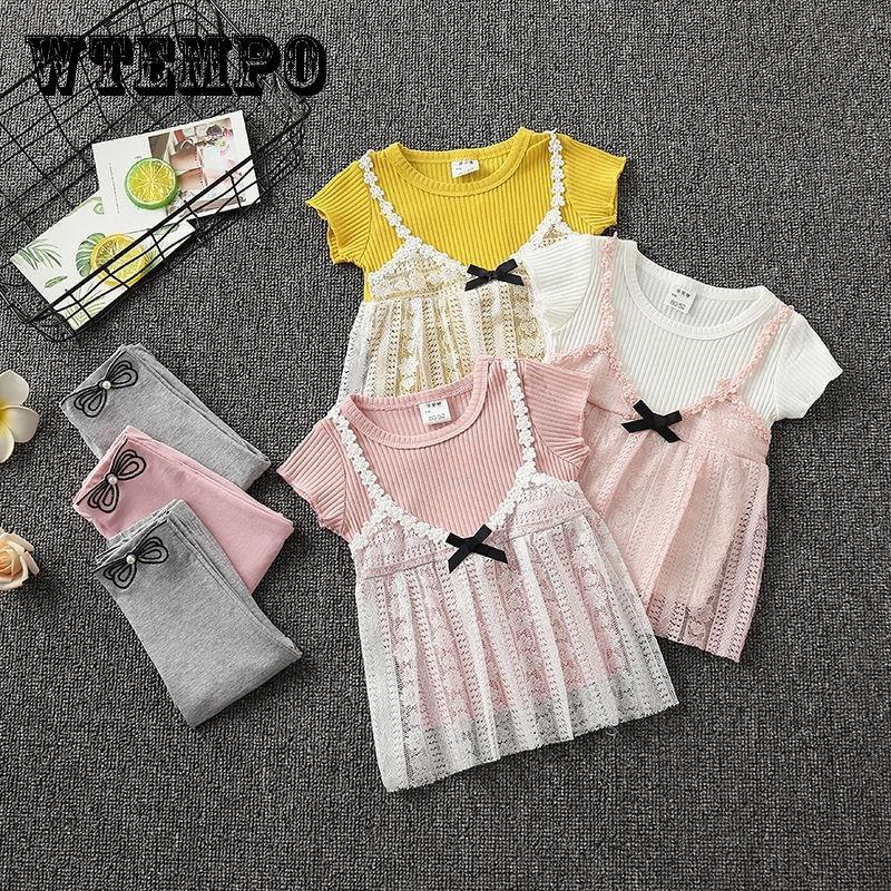Комплект детской одежды из 2 предметов, весенне-летние костюмы для девочек, пряжа, топы с короткими рукавами + брюки, комплект одежды — купить товар онлайн с бесплатной доставкой по всему миру!