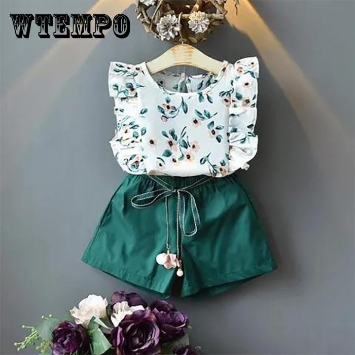Комплект детской одежды из 2 предметов, весенне-летние костюмы для девочек, топ с короткими рукавами с принтом и штаны, комплект одежды
