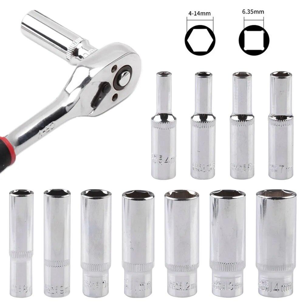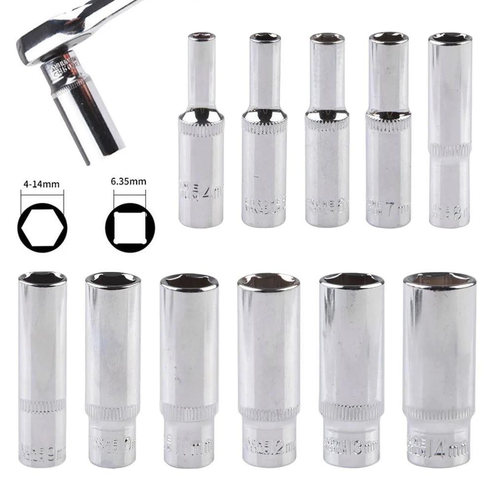 1 шт. 1/4 шестигранный адаптер хром-ванадиевая сталь глубокая торцовая головка для гаечного ключа с храповым механизмом ручной инструмент для ремонта автомобиля