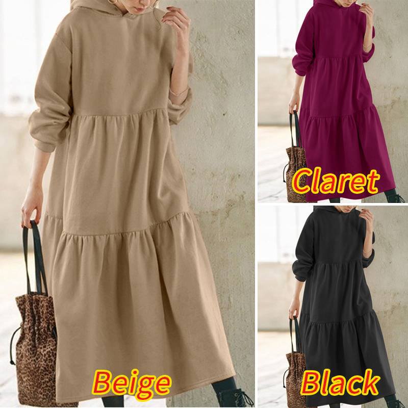Сплошной цвет Толстовка Длинное платье Женская винтажная женская свободная длинная толстовка