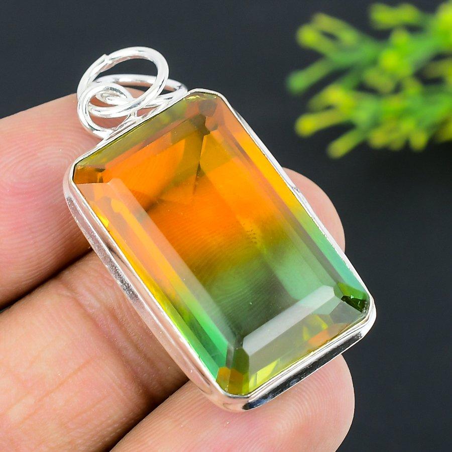 Подвеска из натурального двухцветного турмалина из стерлингового серебра 925 пробы 1,89 дюйма